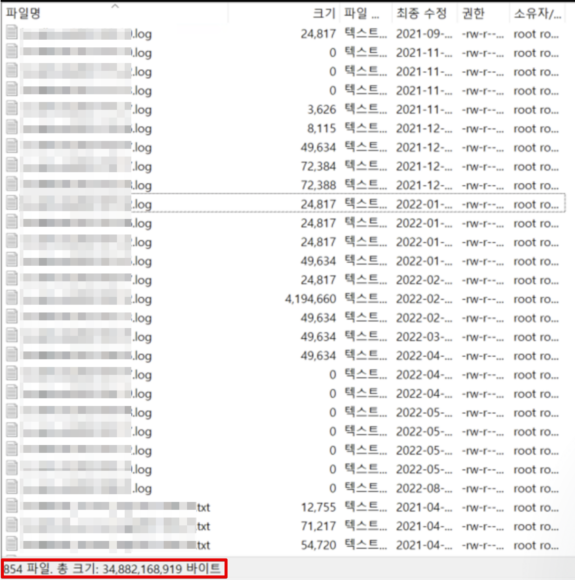 정답은 WAS 로그 때문..