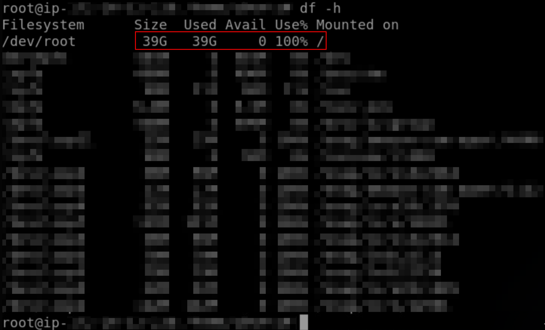 그 후 디스크 상태를 확인하니 정상적인 디스크 사용량으로 변해있었다. 후.. 이후 모든 서비스들을 다시 부팅하고 서버 복구 완료..!