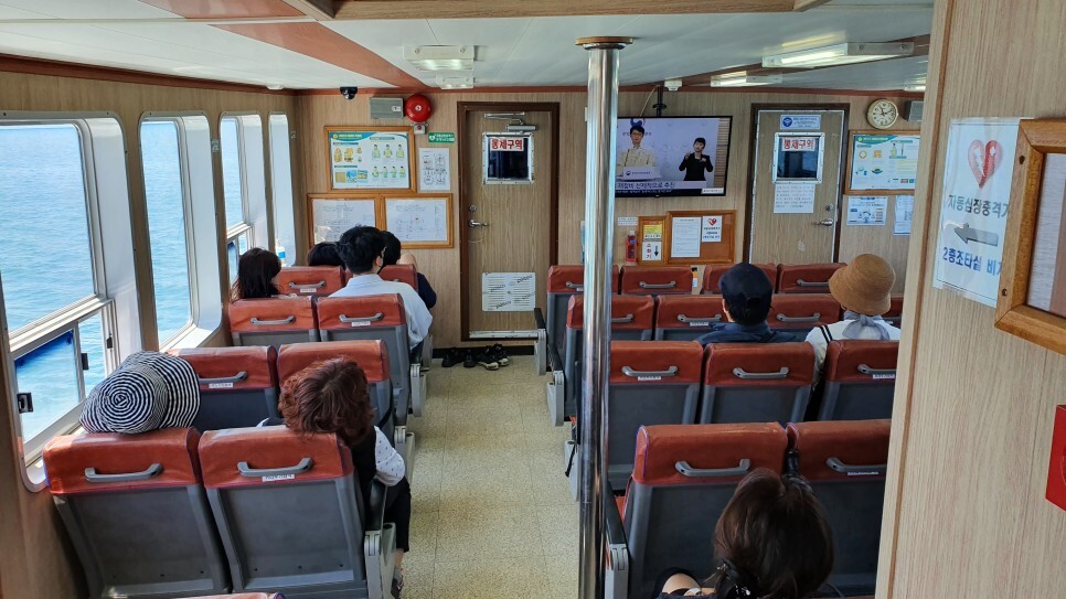 배는 1층 실내와 2층 실외+실내로 구성되어있다. 우린 바다바람을 맞으며 갈것이기 때문에 2층에 자리를 잡았다.