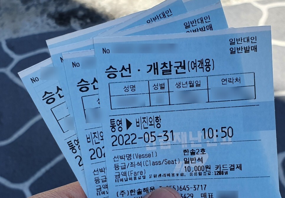 우린 두명이서 갔고 가는거 2장, 오는거 2장을 발권해주셨다. 가격은 편도 1인당 1만원, 따라서 우린 2명 오고, 가고니까 총 4만원이 들었다! 아 그리고 구매할때 신분증이 있어야하니 꼭 지참하자.