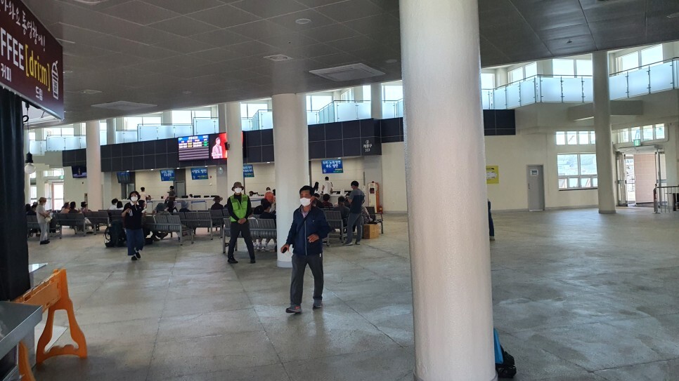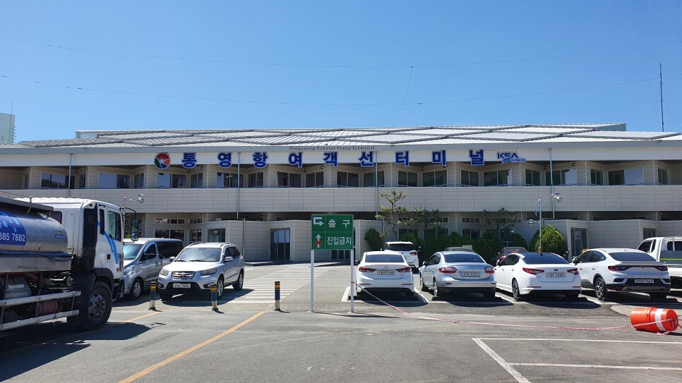 통영항 주차장은 아주 크다. 아무데나 차를 대고 바로 앞에 보이는 통영항여객선터미널에 들어가주자. 출입문이 사선으로 나있는데 먼가 출입문같지 않은데 출입문이니 그냥 들어가면 된다.