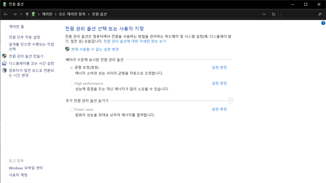 엥..?! 방금까지 인터넷하고 있었는데 겜키니까 무선랜이 끊겨!? 그래서 이 케이스가 기억이난다. 하지만 이것도 100%는 아니었다.한 80% 확률로 이 증상이 나타났고 위 1번과 종합해봤을때 분명..! 전원 옵션이 바뀔때 발생하는 것 같은데?