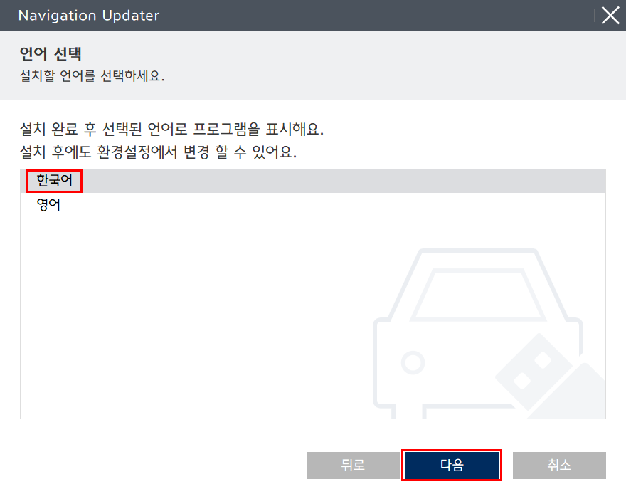 화면에서 바로 Navigaton Updater 다운로드를 선택해준다.