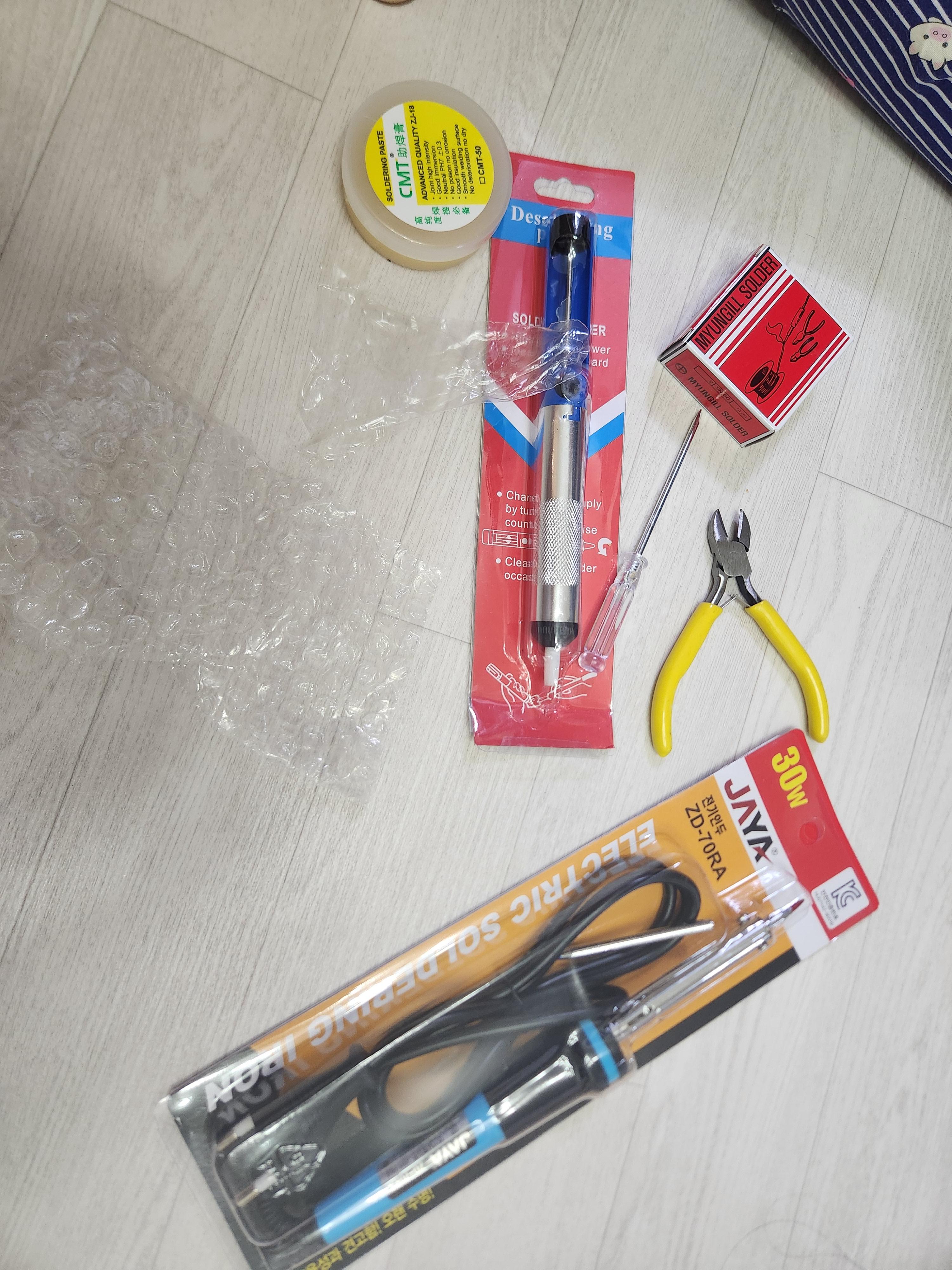 이번 수술을 위한 준비물들.. 쿠팡에서 한 7000원 언저리 주고 산거같다. 전선 분리는 저 인두기 전원 연결하면 뜨거운 열이 나오는데 끝을 기판 납떔에 살짝 대면 납떔이 녹는다. 그때 전선을 빼면 된다. 어차피 이거 설프수리 하려고 검색해서 들어오신분들은 다 납땜도 할 수 있을 사람들로 생각됨으로 간단하게 설명하겠다.