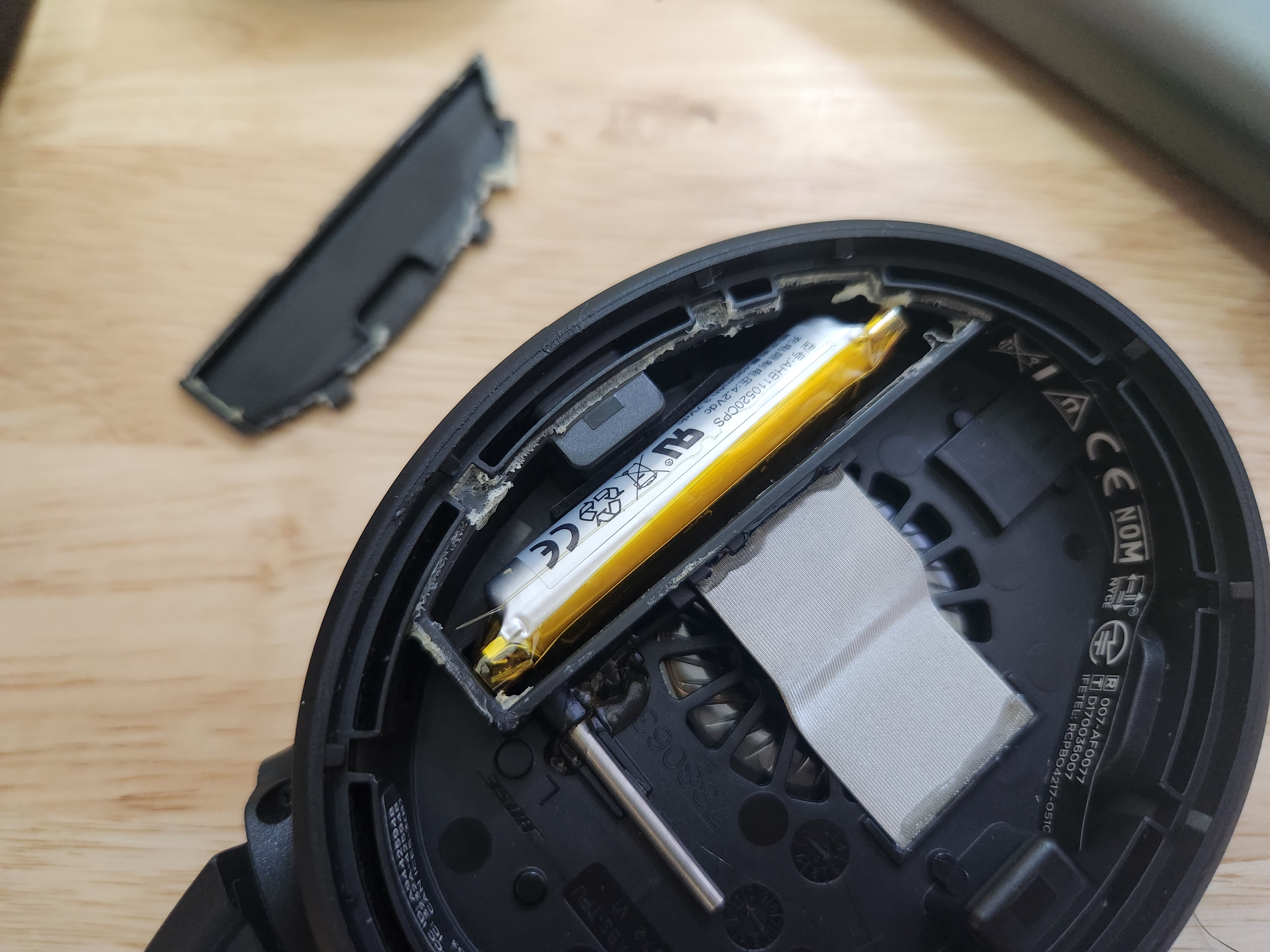 전선 제거 후 아까 열었던 배터리 덮개쪽의 배터리를 잡아서 때면 선은 뒤쪽으로 넘어가서 딱 빠진다. 다만.. 처음에 배터리가 글루건 같은 접착제로 붙어있으니 힘조절을 잘 해서 떼도록 하자... 일자 드라이버로 지렛대질을 하는데 계속 배터리에 손상가서 불나면 어떡하지... 이생각이 자꾸 났다.