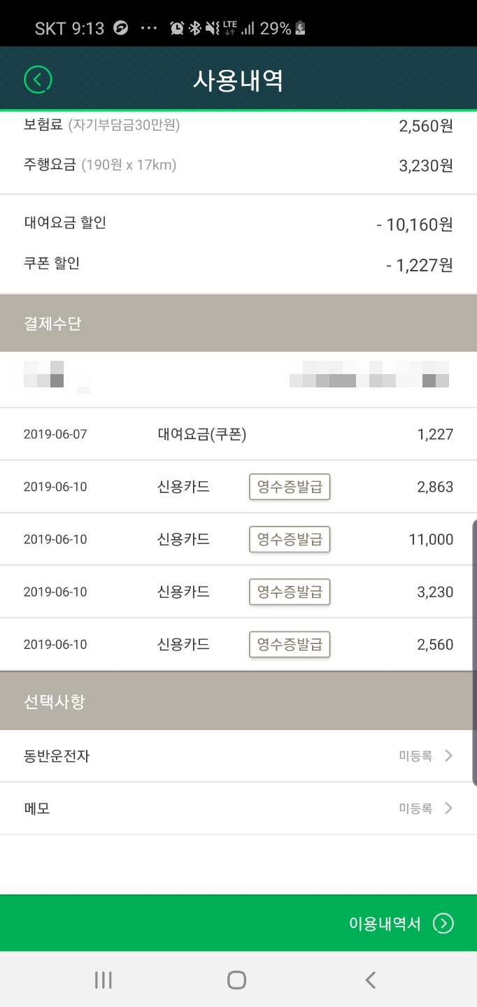 차량은 아반떼차량 빌렸고, 대략 \16,000원쯤 나온것 같다. 이쯤이면 야간, 시외할증 붙은 가격에 반정도 할 것 같은 가격이다.