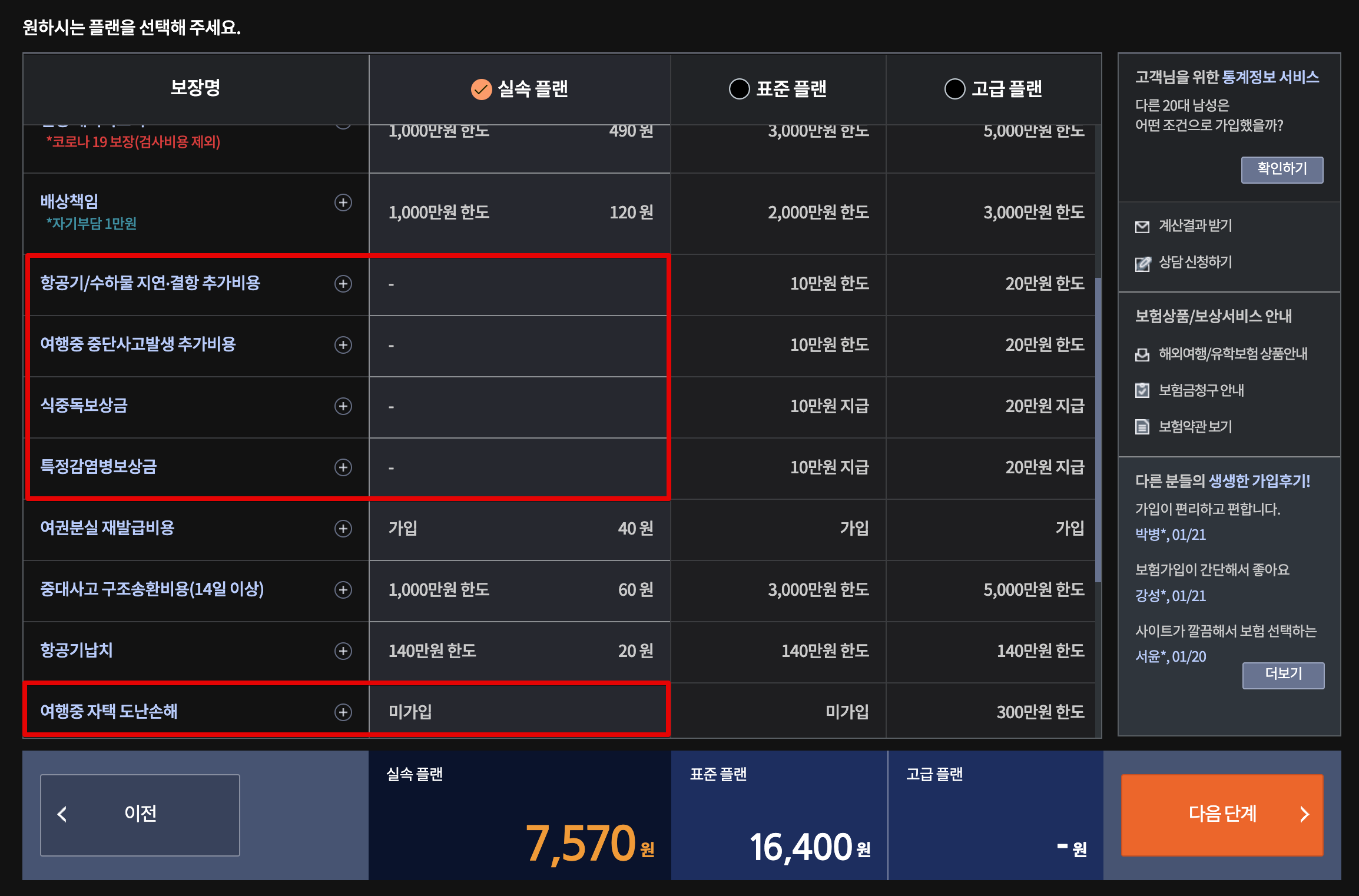 고려해야할껀 바로 분실품! 어떤 사람들은 어? 보통 휴대폰 이런거 잃어버리니까 휴대폰 한 100~200만원하니 스탠다드나 프리미엄 플랜을 선택하는 사람도 있을것이다 (나도 그랬음)