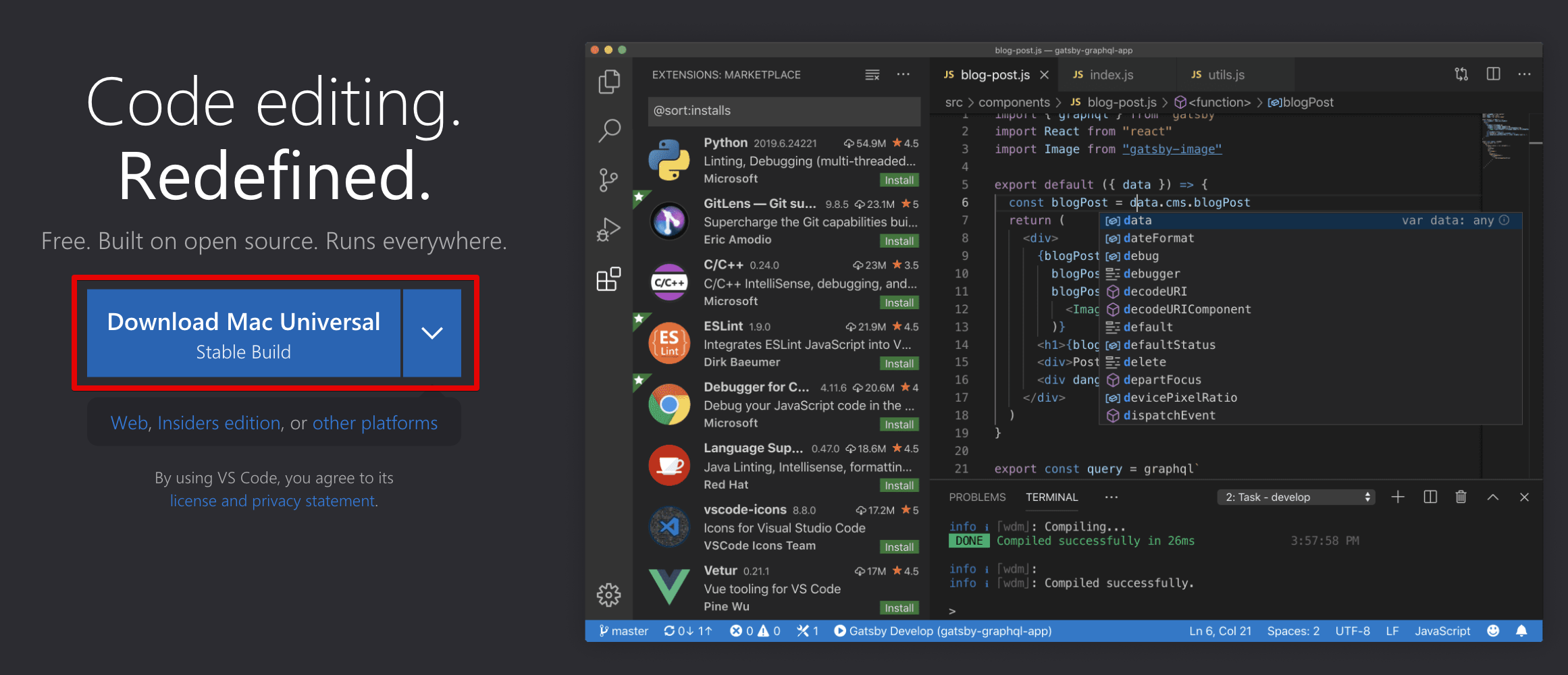 Visual Studio Code - Code Editing. Redefined