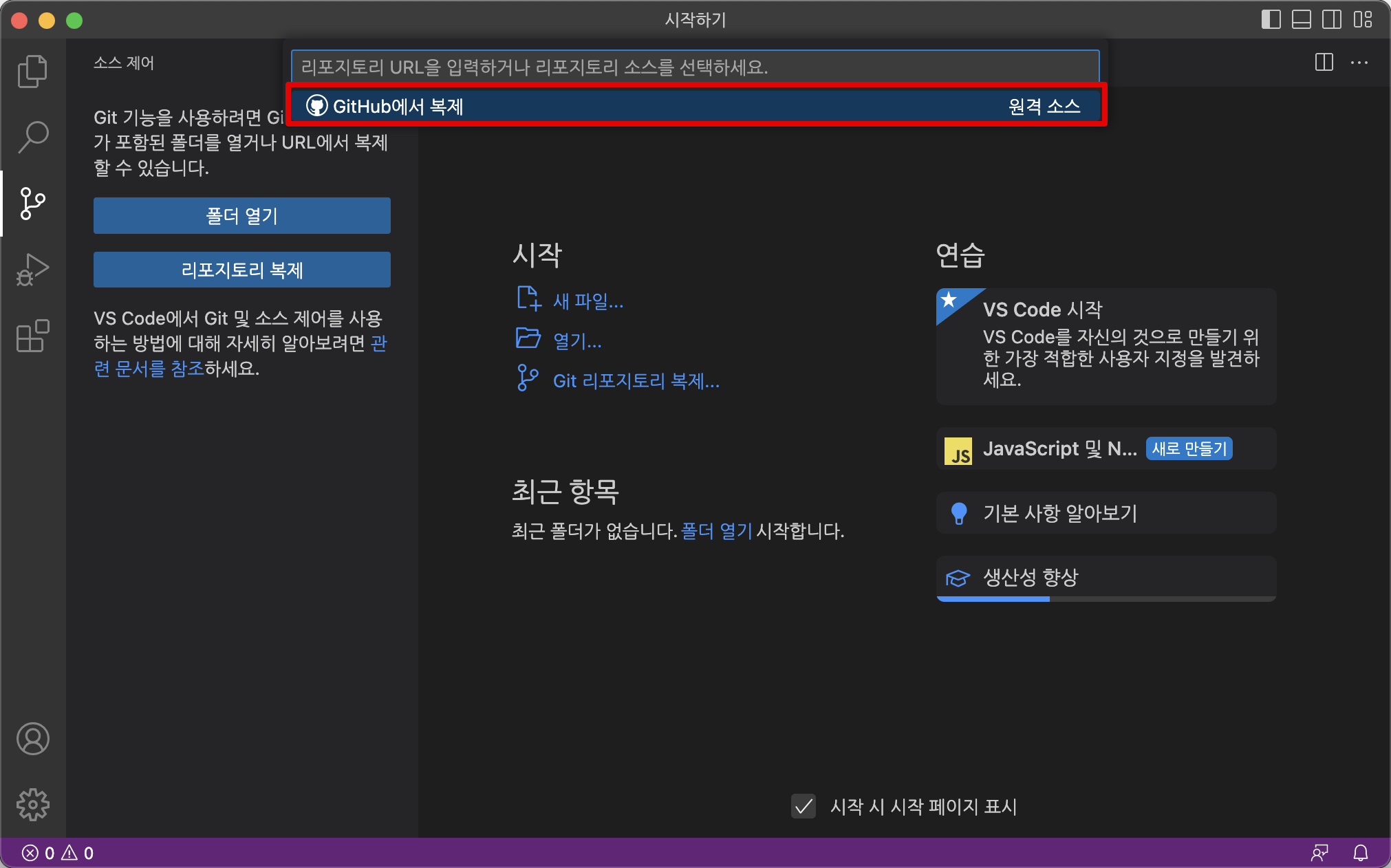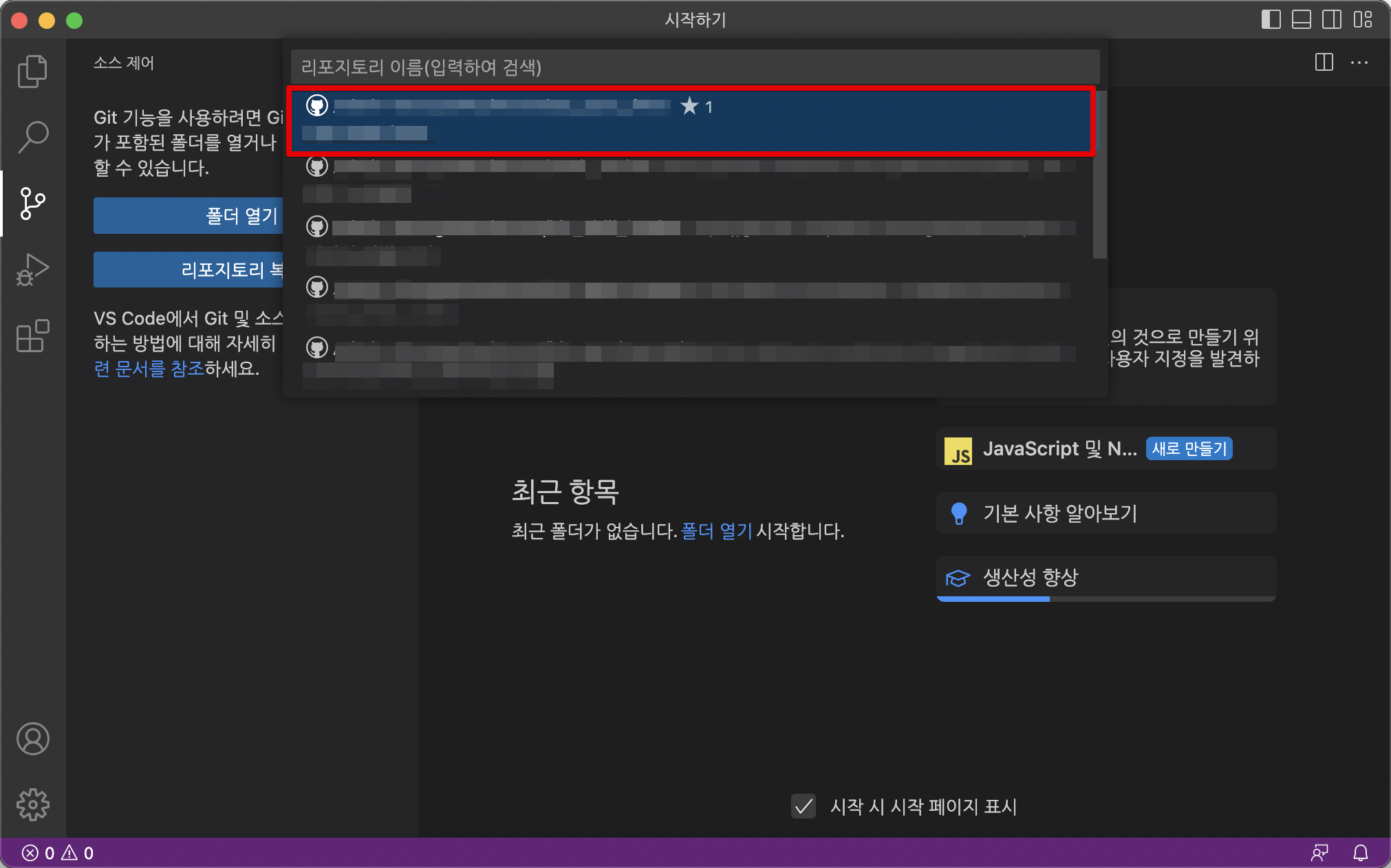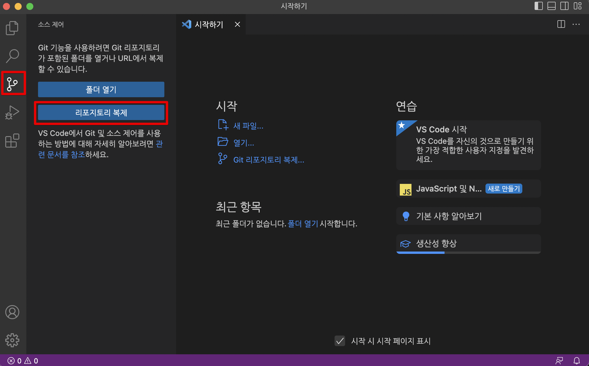 [Mac OS/맥북 M1] VSC <> GIT 연동 / 리포지토리 복제 (프로젝트 가져오기)