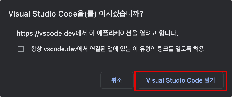 SSO 로그인을 마치고 Visual Studio Code 열기 버튼을 눌러주자.
