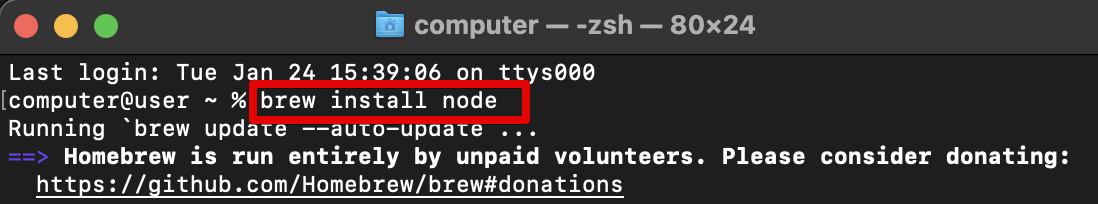 nodejs 설치는 공홈에서 설치 패키지를 받는 방법도있는데 PC에 이미 brew가 설치되어있기 때문에 brew 명령어를 이용해 간단하게 설치하고자 한다.