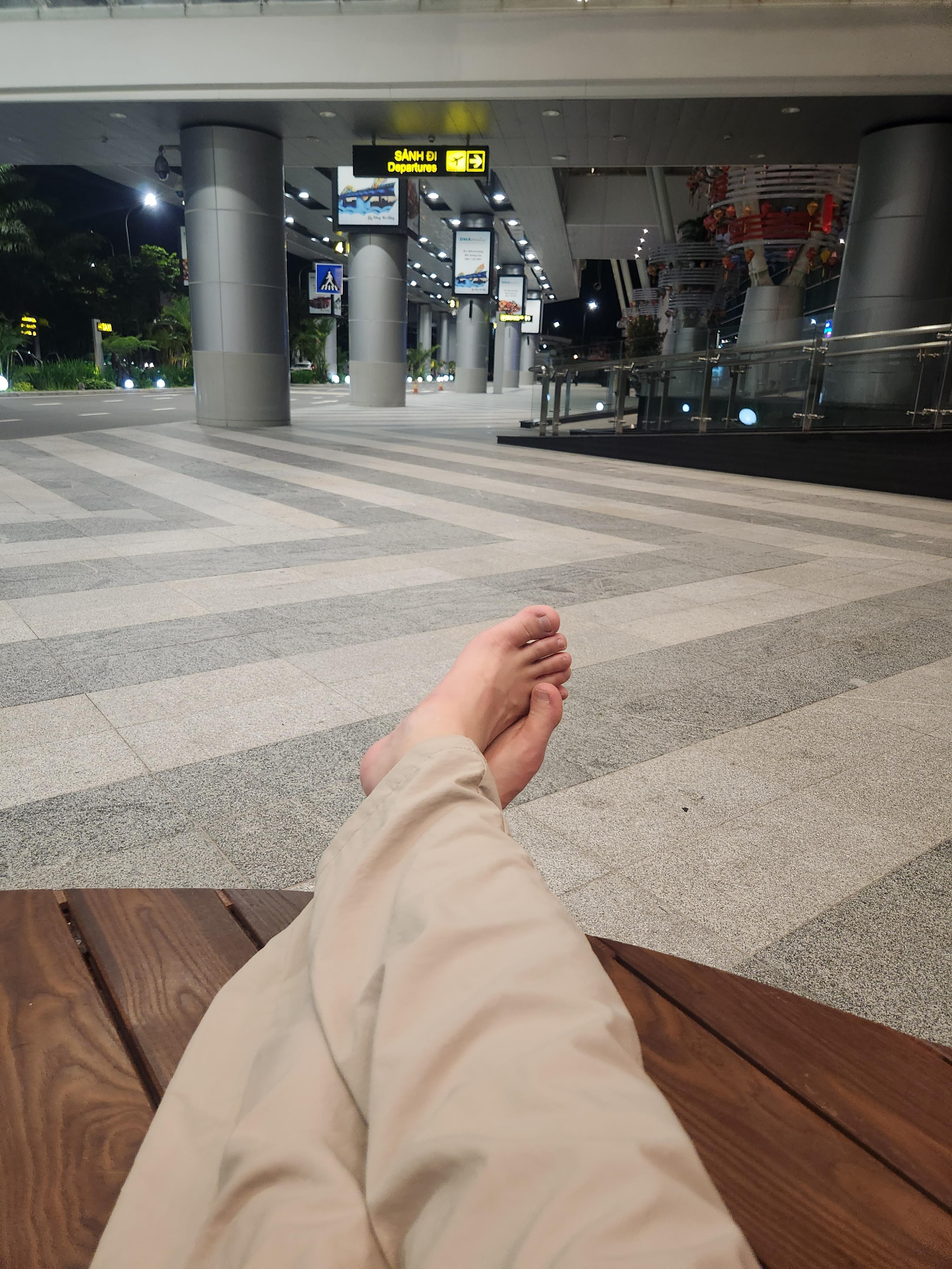 국제선 청사를 나오면 아까 택시 잡던곳으로 나오는데 여기 1층에 벤치들이 엄청 많다. 요기서 쉬면 된다.동남아 국가라서 그런지 1월 인데도 이렇게 입어도 딱히 춥거나 그러진 않았다. 근데 반팔/반바지로 한시간 버티기엔 좀 쌀쌀할 것으로 생각된다. 보니까 ㅋㅋ 여기 주위에 우리처럼 국내선/국제선 첫 비행기 기다리는 사람들이 노숙하고 있더라 ㅋㅋㅋ우리도 여기 누워서 더글로리 다운받아놓은걸 보면서 시간을 떼웠다.