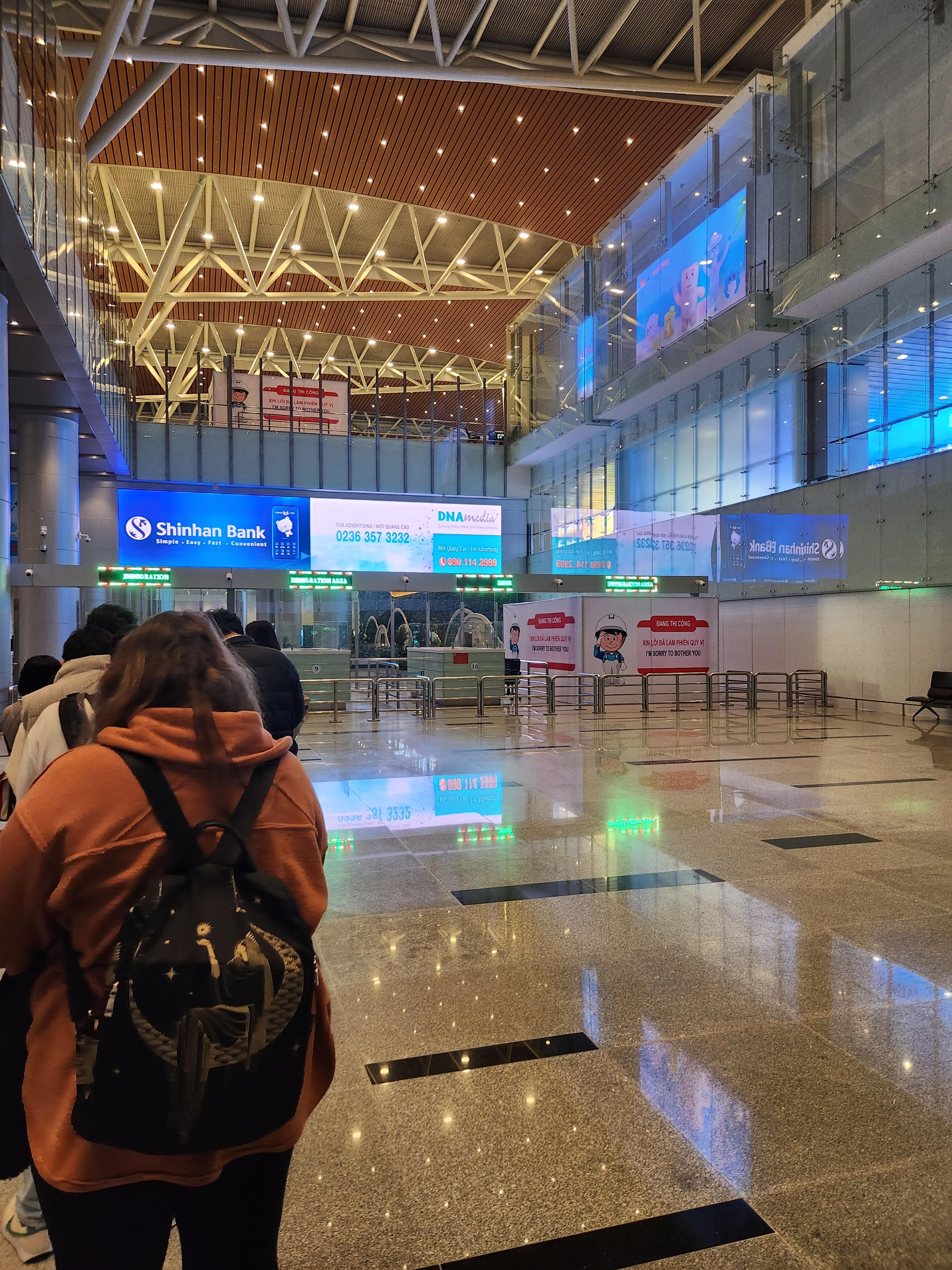 현지시간 +1일 되어 01시 30분경 새벽에 다낭 국제공항에 도착했다. 시차가 2시간이 있기 때문에 총 비행시간은 약 5시간 언저리걸렸다. 요기는 입국심사대인데 새벽에 직원이 많이 없는데도 불구하고 그리 오래걸리지 않았다.