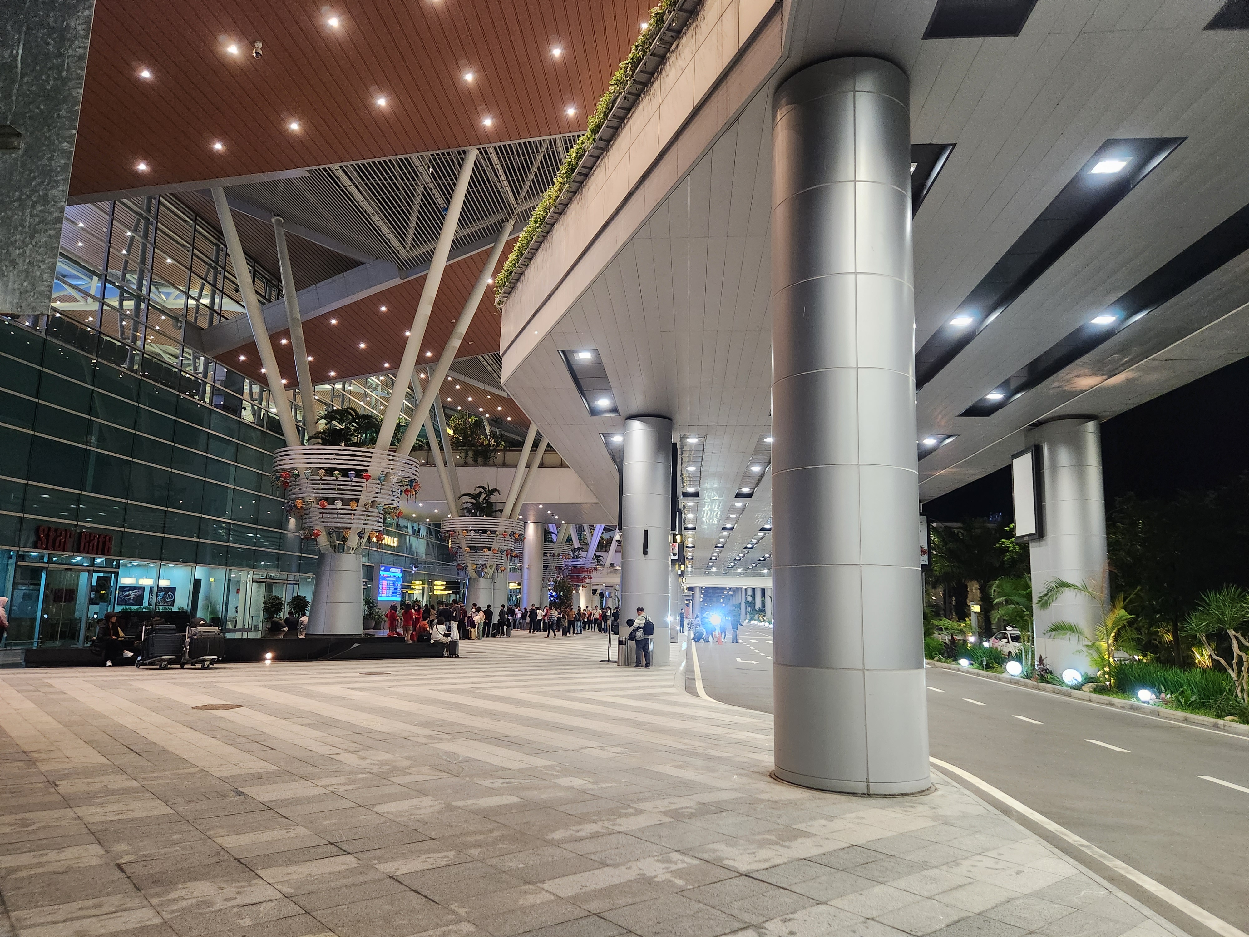 가는 방법은 간단하다. 국제선 청사에서 나오면 딱 이런 과아경이다 .저 아저씨들 서있는 횡단보도 뒤쪽으로 쭉 가면 그랩 택시를 탈 수 있는 곳이다. 우린 택시 필요없이 도보로 한 3분 거리 국내선 청사를 갈 것임으로 위 사진에서 우측으로 가야한다.