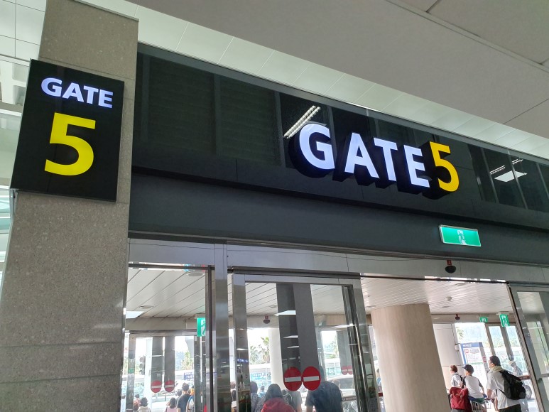 5번 게이트로 나오면 바로 앞에 횡단보도를 건너다보면 렌터카 셔틀버스 가는길 표지가 보인다.