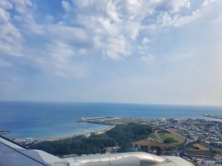 드디어 제주도가 보인다. 비행시간이 한시간밖에 되지 않았지만 미쳐버리는줄 알았다. 앞,뒤,옆에서 어린애들이 울고 소리지르고.. 아니.. 뭐 불만이 있어서 소리지르는것도아니고 아무것도 안했는데 갑자기 틱처럼 소리지르고 난리도 아니다. 울고불고 하고있는데 부모가 아무신경도 안쓰는거나 오히려 이쁘다고 오구오구하는게 꽤나 충격이다..