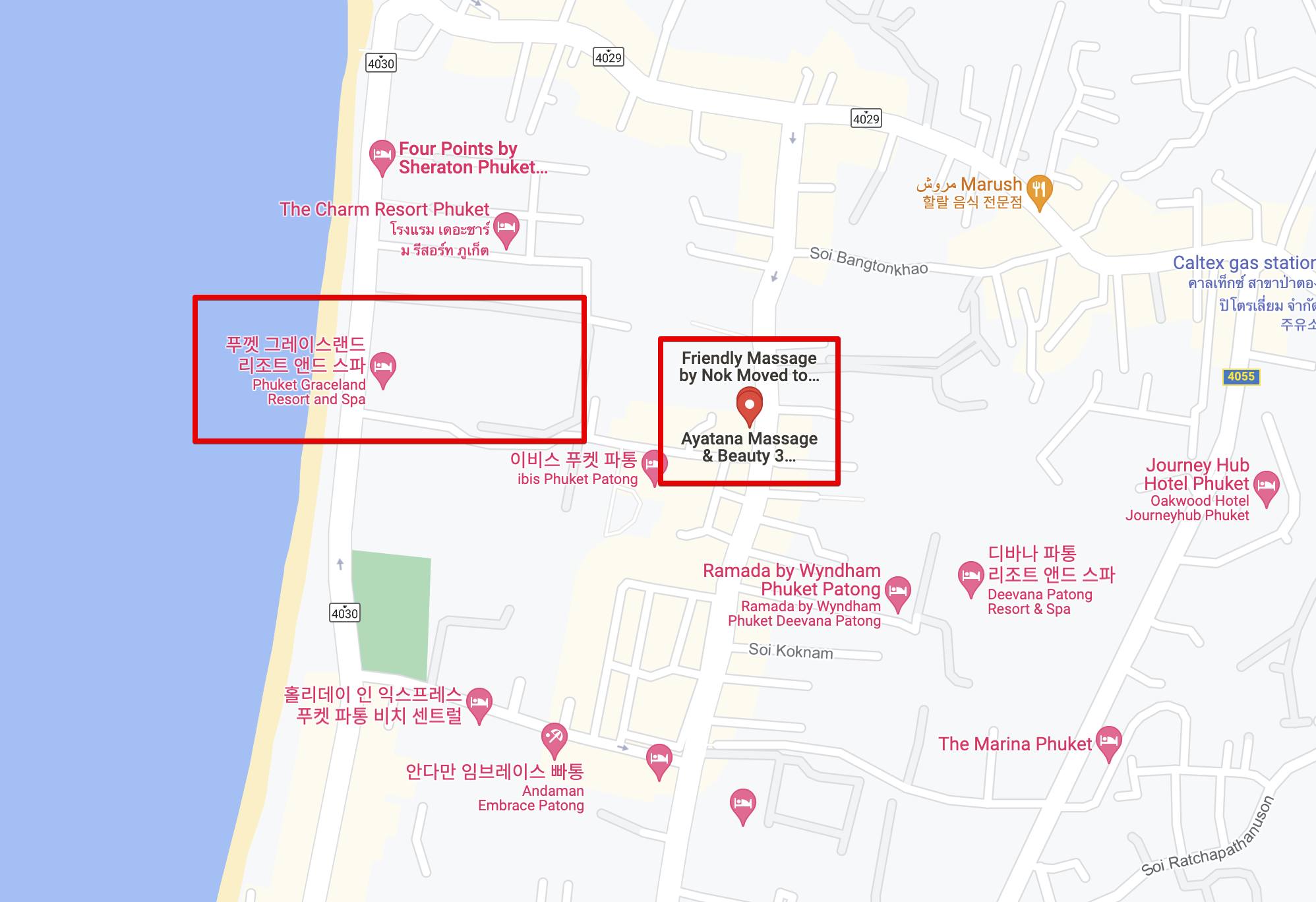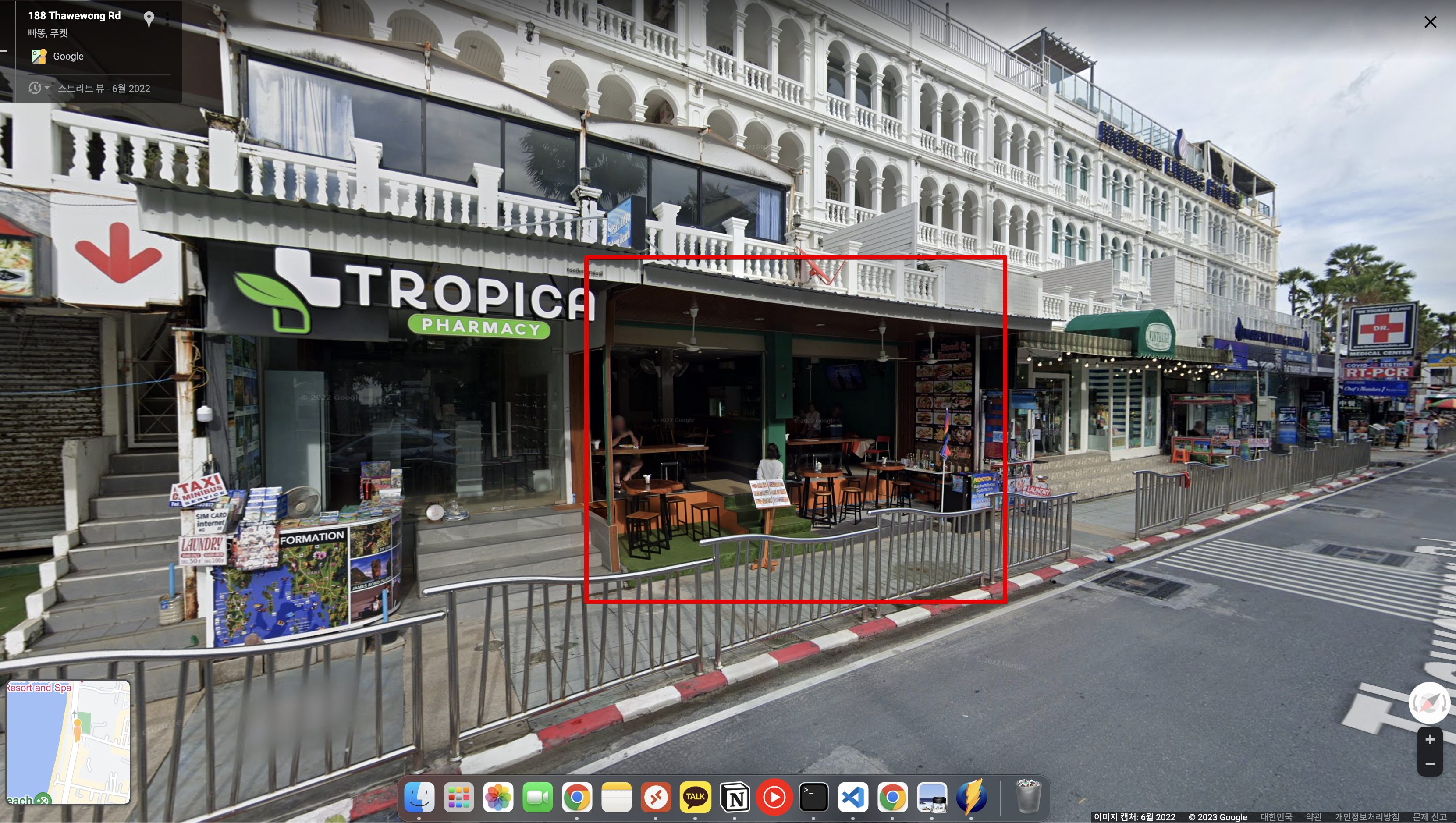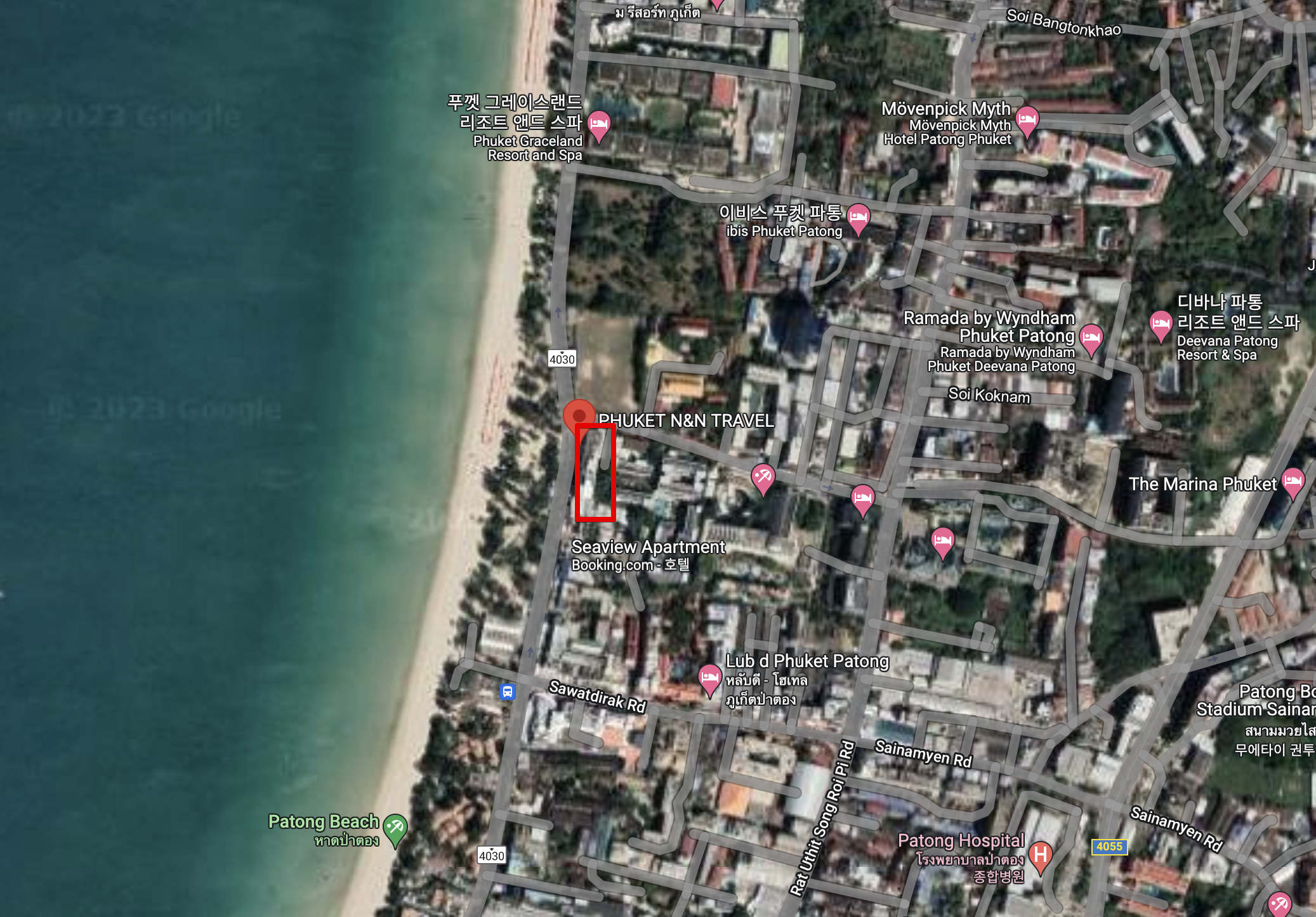 일단.. 머 검색해보지 않고 그냥 길 걷다가 괜찮아 보이는 곳에 들어갔고 포스팅하려고 가게이름을 찾아보는데 ㅋㅋㅋ 구글맵에 등록되지 않은 업체더라.. ㅋㅋㅋ 머 간판도없고 이름도 없어서.. 그냥 진짜 아무식당이다.. ㅋㅋ 위치는 빠통비치 북쪽 초입 저 빨간색 박스 건물에 있다.
