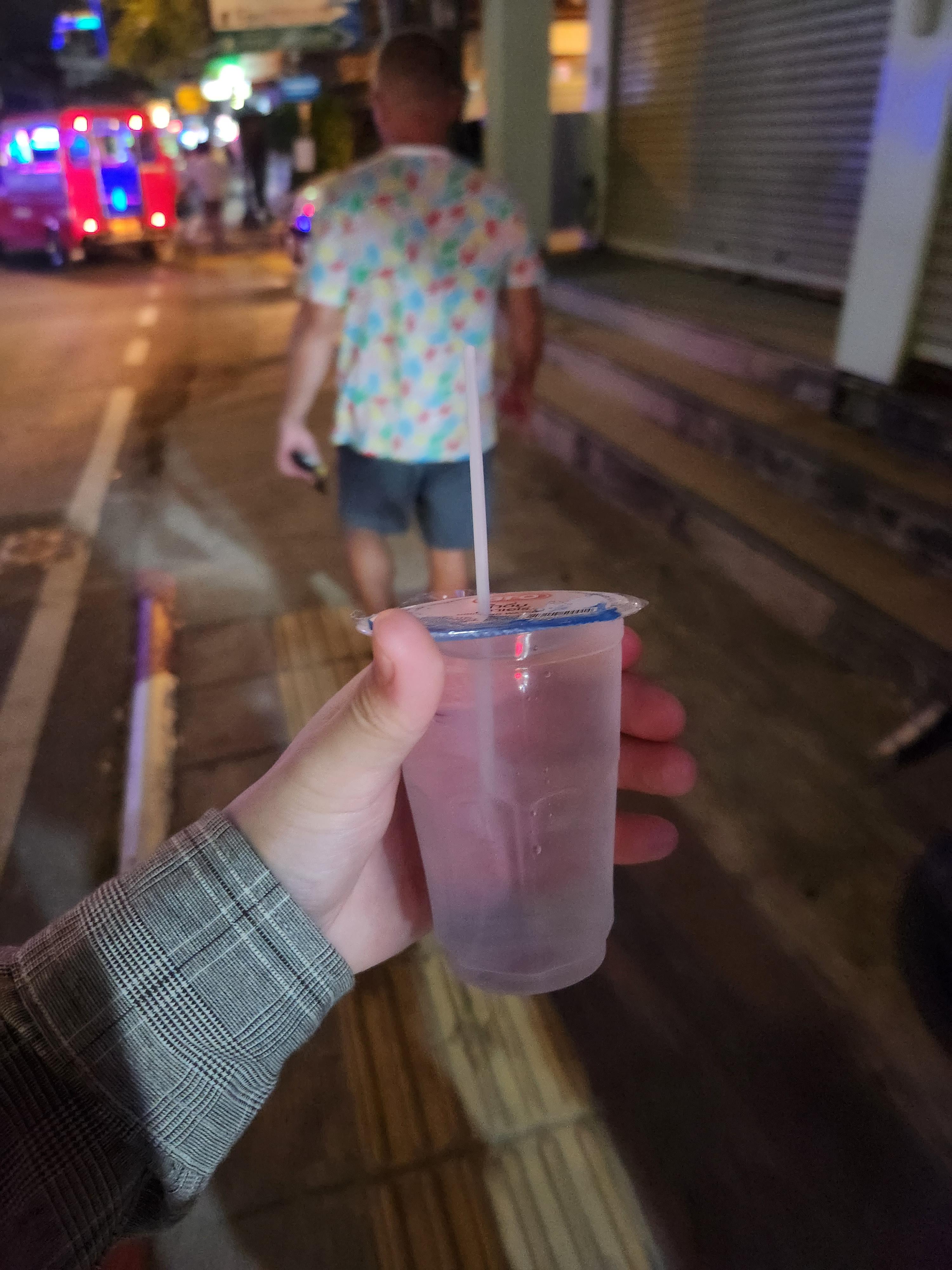 빠통비치 초입에 있는 노점상 수박주스 한 60바트 했던가. 한 컵 사먹었다.