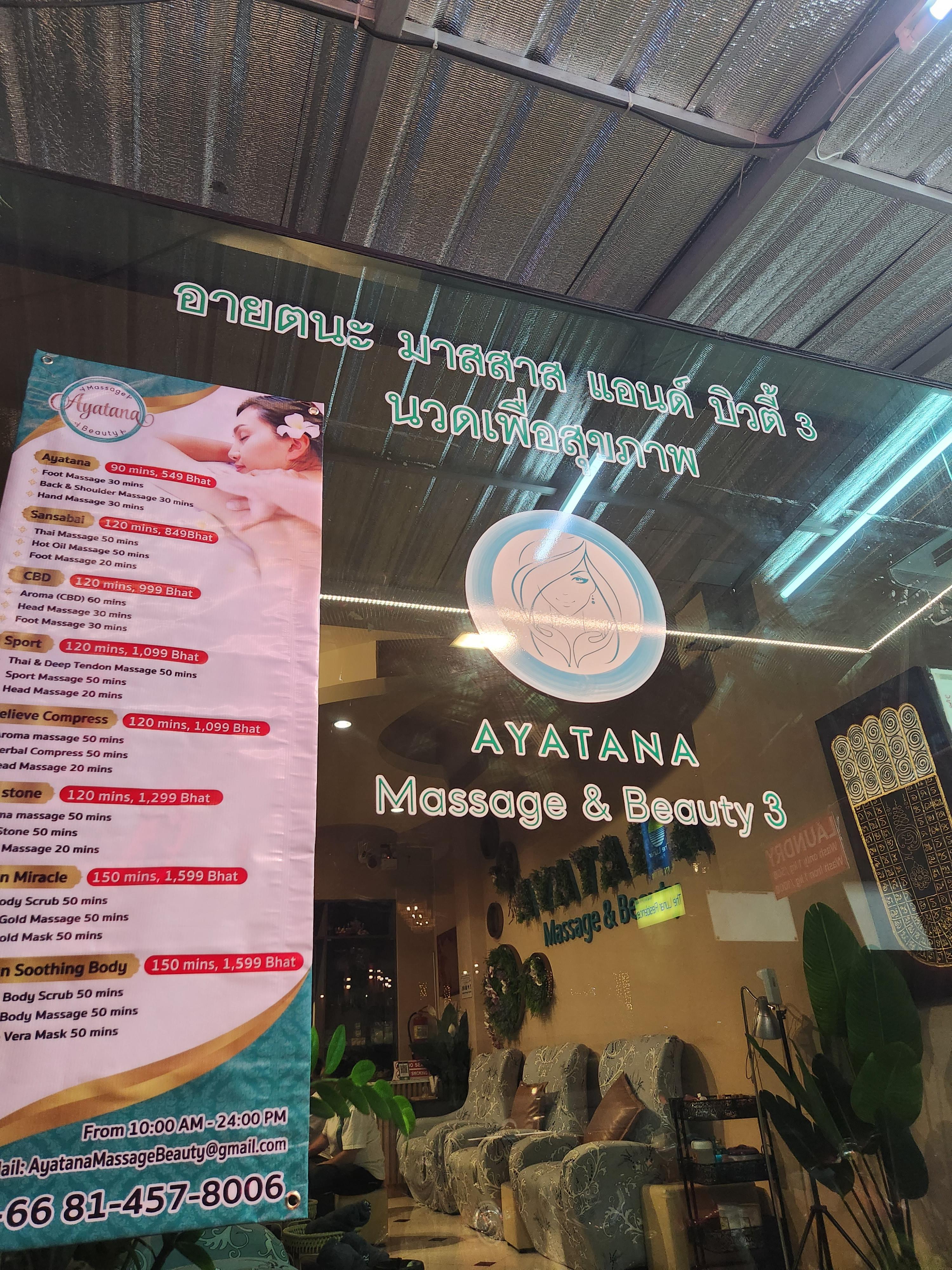 우리가 간 곳의 이름은 "Ayatana Massage & Beauty 3 (Across Lunar Hotel)" 요기였다. 그레이스랜드 리조트 뒷쪽으로 나오면 바로 있다.