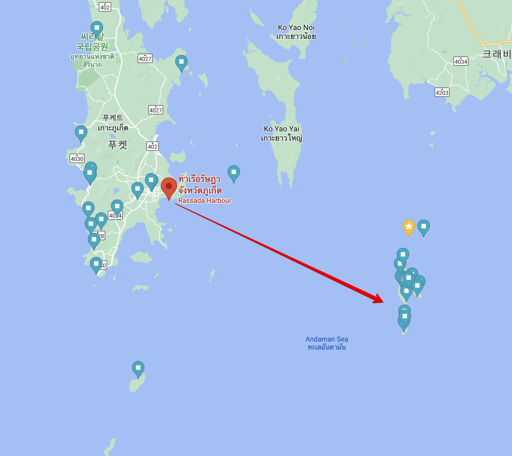 피피섬은 푸켓 본섬과 약 50km 떨어진 곳에 위치해있다. 푸켓말고도 피피섬 북쪽 끄라비에서도 많이 오던데 푸켓 본섬에서 이동하는 방법에 대해 알아보자! 일단 배편으로 이동을 해야한다. 푸켓 본섬 남동쪽에 푸켓 올드타운이 있고 맞닿은 해변에 라사다 항구가 있다. Phuket (Rassada Pier) 요기서 배를 타야하고 이동하면 끝!