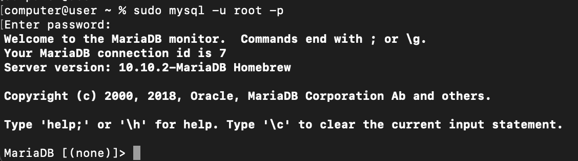 sudo mysql -u root -p