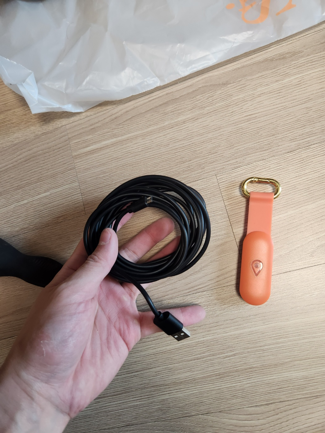 돌돌이 다 풀고 그 사이에 3m USB 선을 넣고 다시 돌돌이를 감아준다