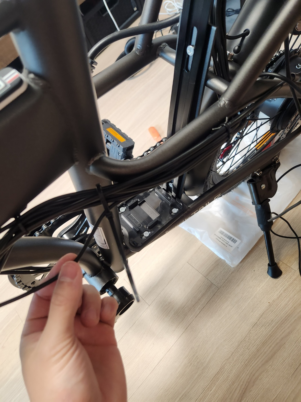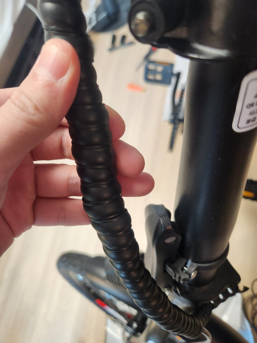 자 이제 핸들부터 자전거 프레임까지 배선 작업을 하기 위해 기존에 감겨있던 돌돌이를 제거해준다. 처음 시작하는 부분부터 바깥으로 돌리면서 내려가면 풀린다.