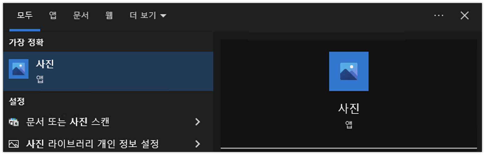 어느날 시작버튼을 눌러 검색할 경우 윈도우10의 기본 프로그램인 사진 앱이 나오지 않는 것을 발견했다. 처음엔 사진앱만의 문제인줄 알고 사진앱의 캐시를 초기화 한다거나 기본적인 조치를 취해봤으나 이건.. 사진앱만의 문제가 아니었다..!