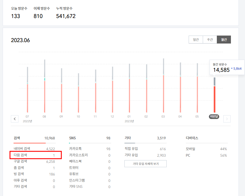 어느날 블로그 방문 통계를 확인해보니 다음 유입이 없어져버렸다.. 헉 그래도 많지는 않아도 어느정도는 됐었는데말이다..대략 시기를 보니 5월 전후로 다음 유입이 사라지고 있었다. 뭘 잘못한 것일까. 일단 다른 사람들은 어떤지 찾아 보았고 대부분 아래 경우가 많았다.