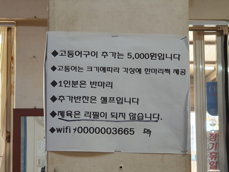 세부 메뉴판은 이거 하나다. 간단하다. 원래 맛집은 메뉴판따위 복잡하지 않는데 잘 지켜지고 있다.