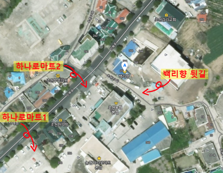 주차는 백리향 우측으로 들어오면 이렇게 주차라인 있는 갓길이 있으니 여기 주차하면 된다. 정안된다면 하나로마트에서 음료라도 간단히 사고 하나로마트 주차장에 대놓아야 할 것 같다.