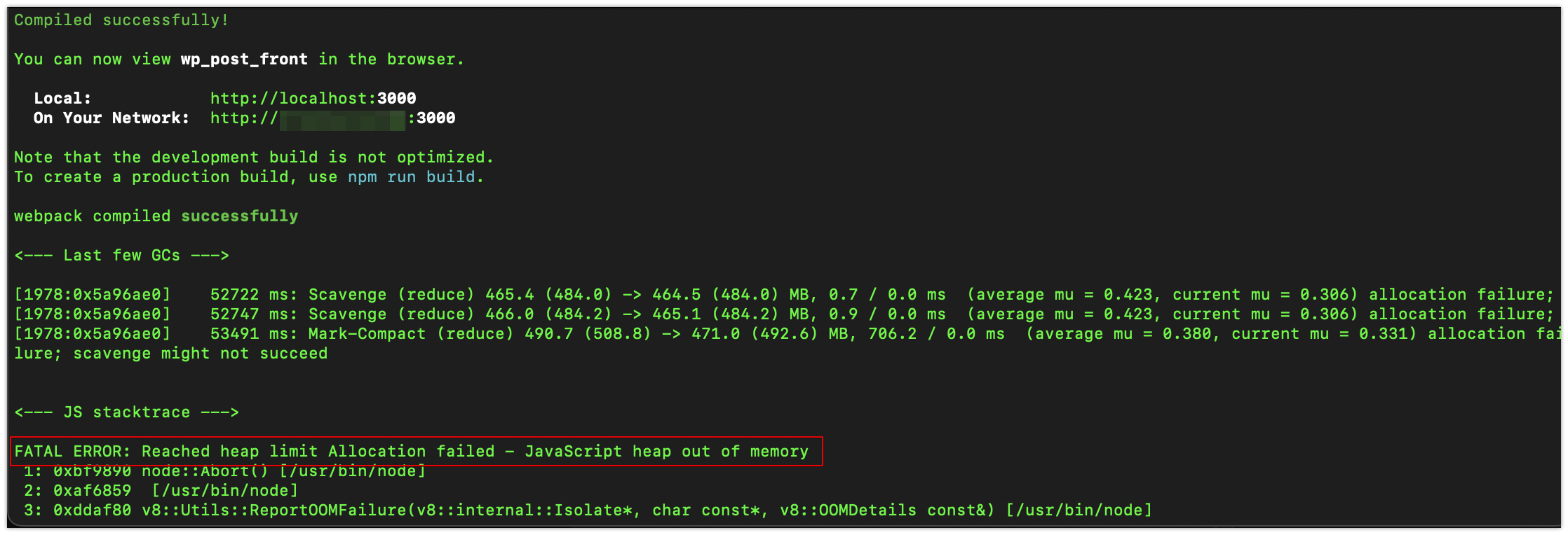 - FATAL ERROR: Reached heap limit Allocation failed - JavaScript heap out of memory