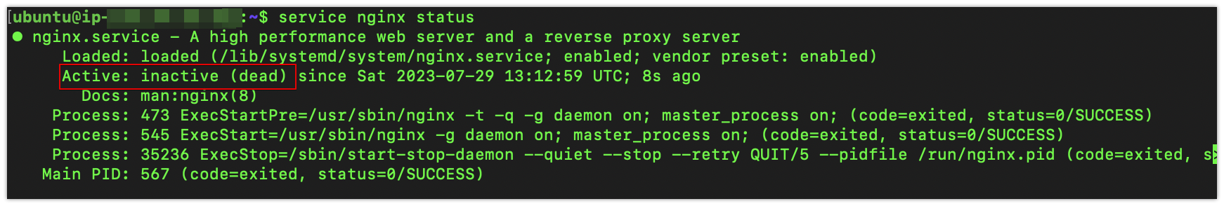 아마 설치후 자동으로 실행되었던거같은데, 아래 Nginx 상태보는 명령어로 Nginx WEB 서버의 상태를 확인해보고 꺼져있으면 시작 커멘드를 이용해서 크면 된다.