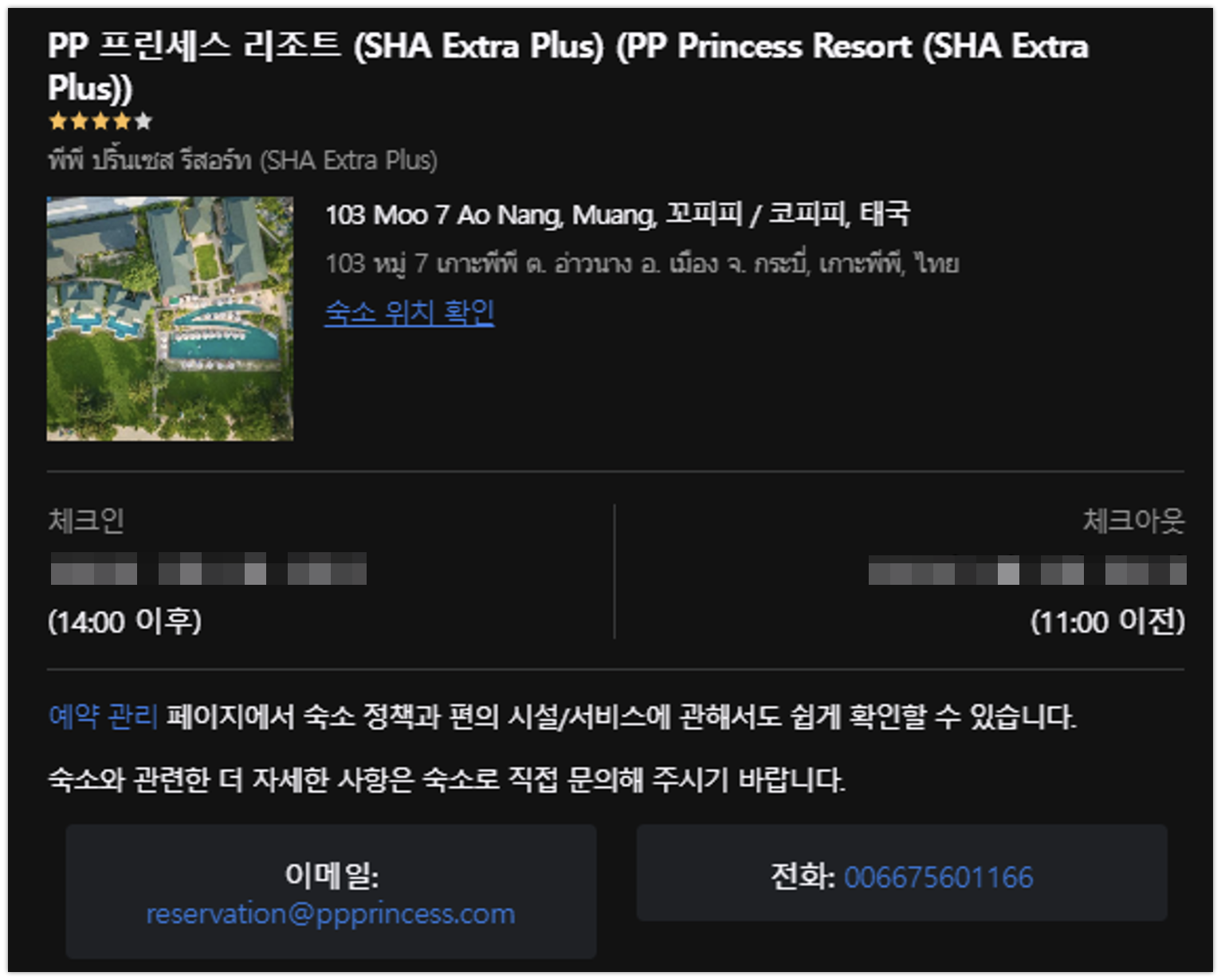 예약 정보 피피섬에서의 첫 숙소는 피피 코코 리조트! 그냥 콘크리트 건물이 아니고 열대 우림속 오두막같은 컨셉으로 아주 귀여운 숙소다 ㅋㅋ 위치가 톤사이항에서 살짝 거리가 있긴하다. 하