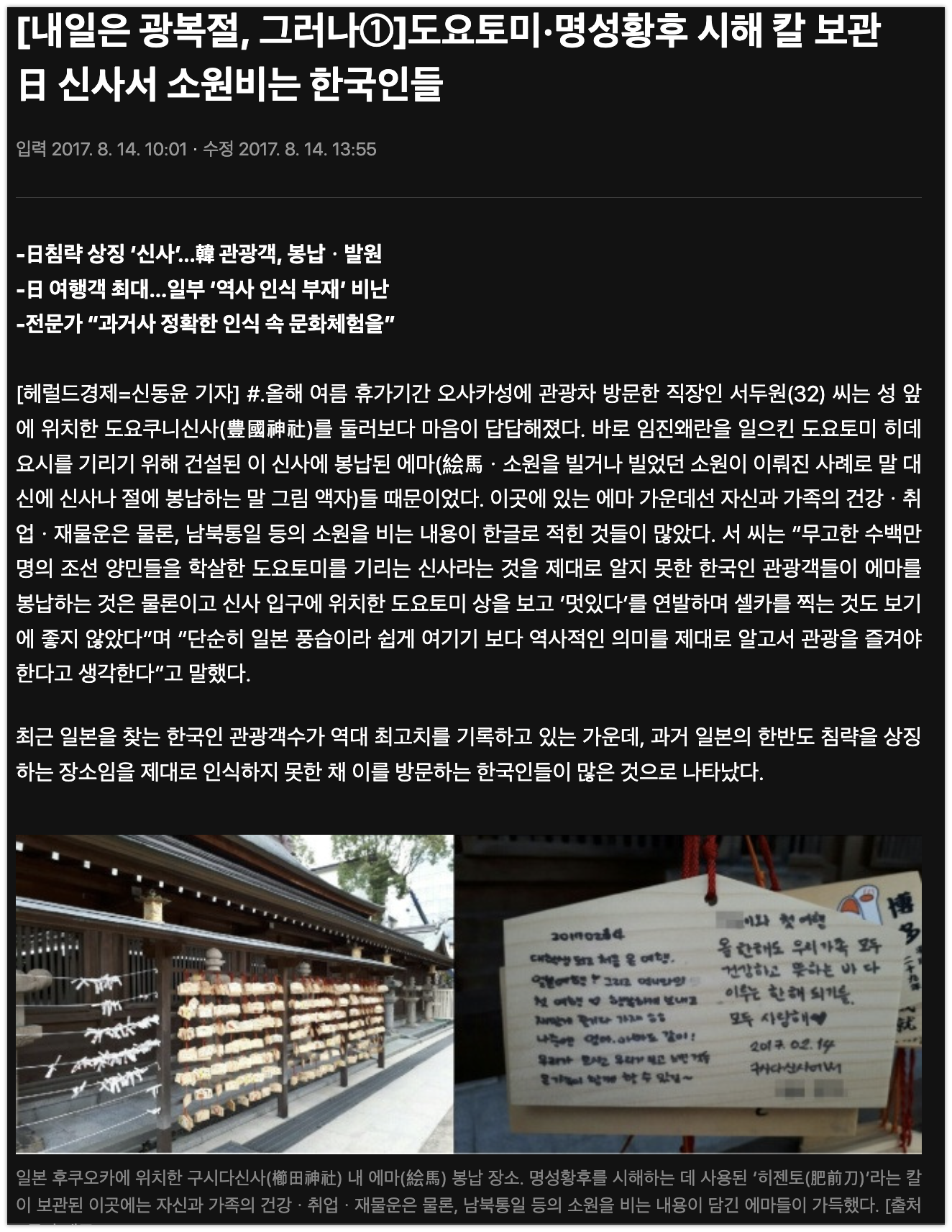 일본 여행은 특히 방문하는 곳마다 한일 관련 민감한 것들이 있을까봐 미리 알아보고 방문을 하는 편인데, 다른분들께 관광지에서 웃고 떠들지 마세요! 까지는 권하지 않겠지만, 이런 내용을 알고 우리 나라의 아픈 역사를 한번쯤 생각해보는 것도 좋을 것 같다. 아래와 같은 상황보다 시간이 가더라도 역사를 잊지 않으면 더 좋으니까요 ㅎㅎ