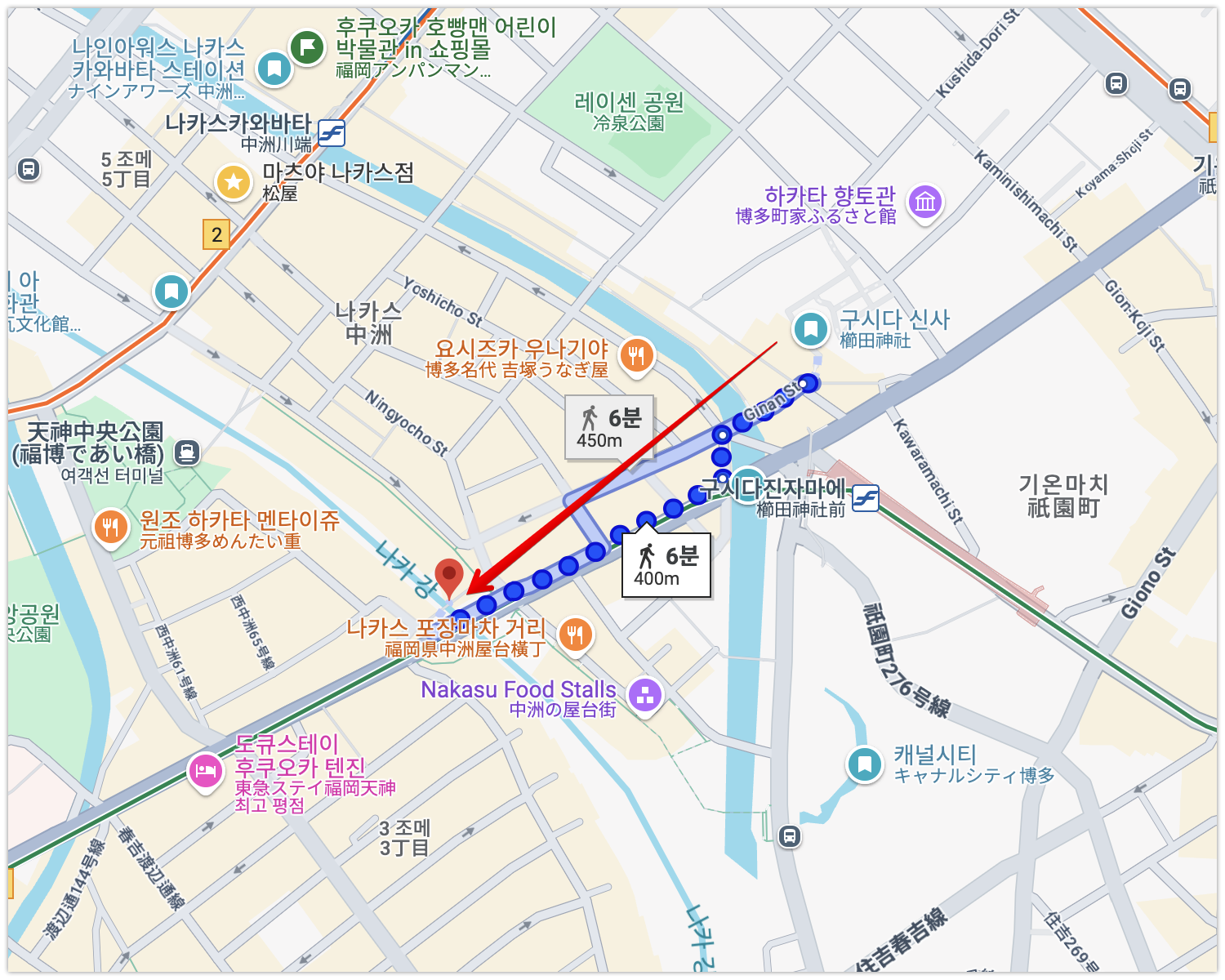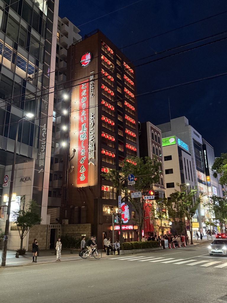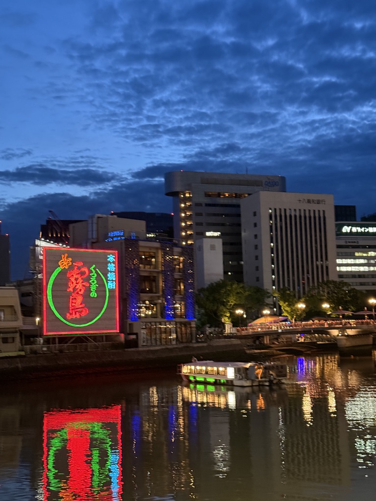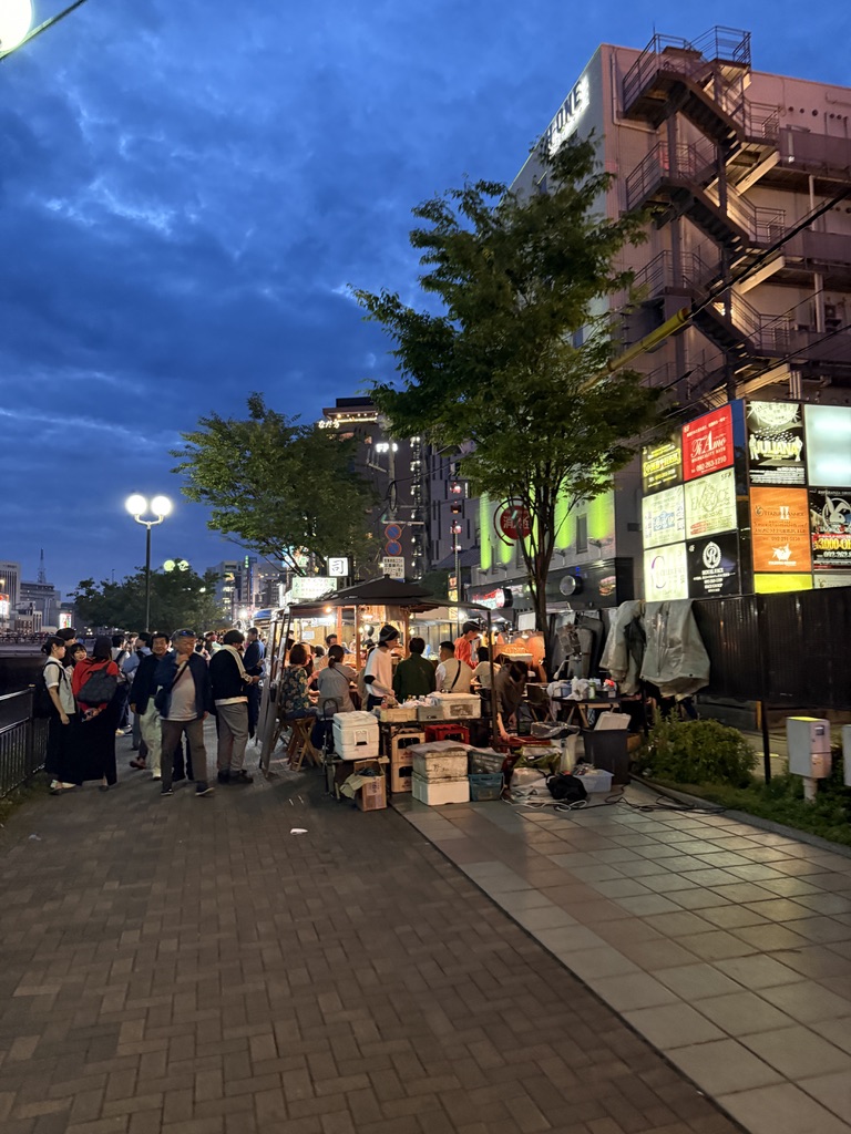 아침에는 주변이 한산했다 .저녁에 올때는 달랐는데 이 나카스강 일대는 후쿠오카 유흥의 중심지로 에도 시대부터 주변에 음식점, 연극장, 여관 등이 밀집해 있었던 곳이라고 한다. 그래서 아침엔 몰랐는데 저녁에 주변을 거닐어보면 한국의 포장마차 같은 문화도 볼 수 있다.