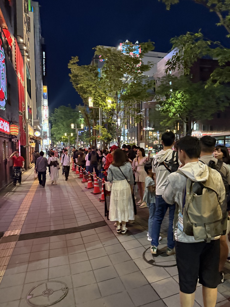 복귀하는 길에 혹시나.. 이시간까지 사람들이 라면을 먹겠어..? 하고 이치란 본점가서 찍먹 해보려했는데 줄이 더 불어났다... 아래 우측에 있는 사진이 바로 건물 밖에 선 대기줄이다.. 밥먹는데 웨이팅 하는건 질색이라 바로 숙소로 복귀했다.
