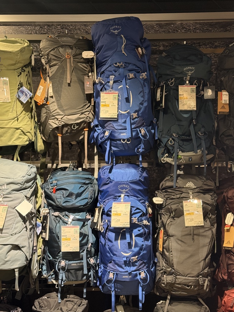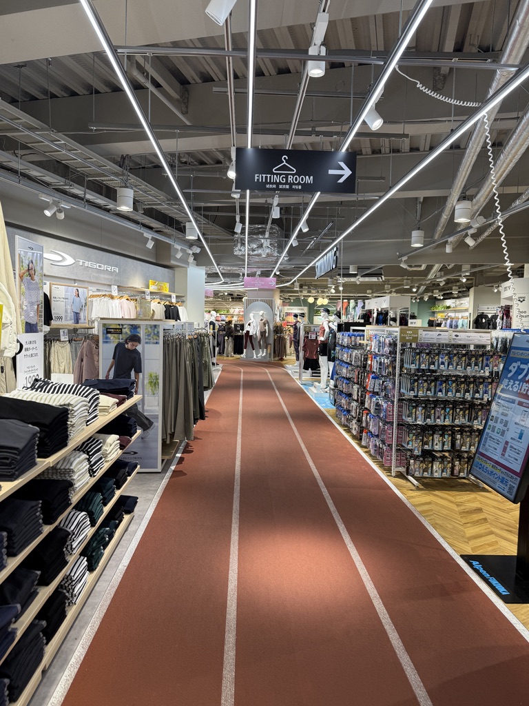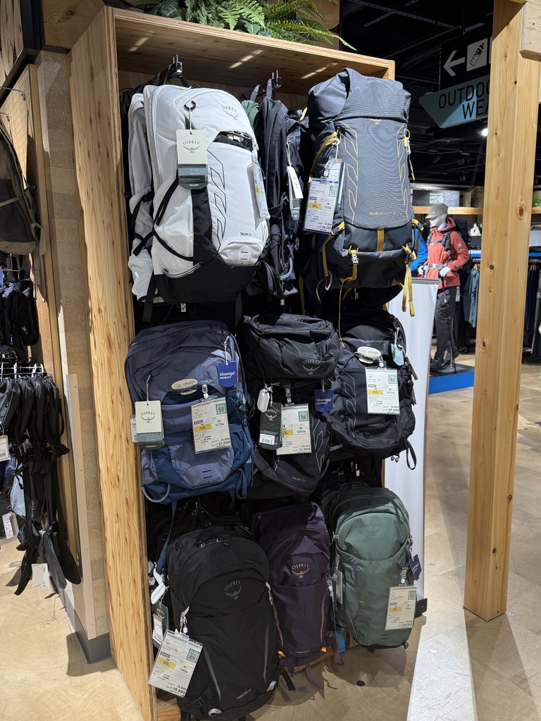 유일하게 맘에 들었던 곳은 바로 스포츠 코너였는데, 바닥이 트랙 레인으로 꾸며진 것도 맘에 들었고, 무엇보다 오스프리 제품이 많이 있어서 놀랐다. 나는 오스프리 가방 사려고 서울에 몇없는 매장 까지 가서 구매했는데 ㅠㅠ. 그리고 제품도 굉장히 많아서 부러웠다.