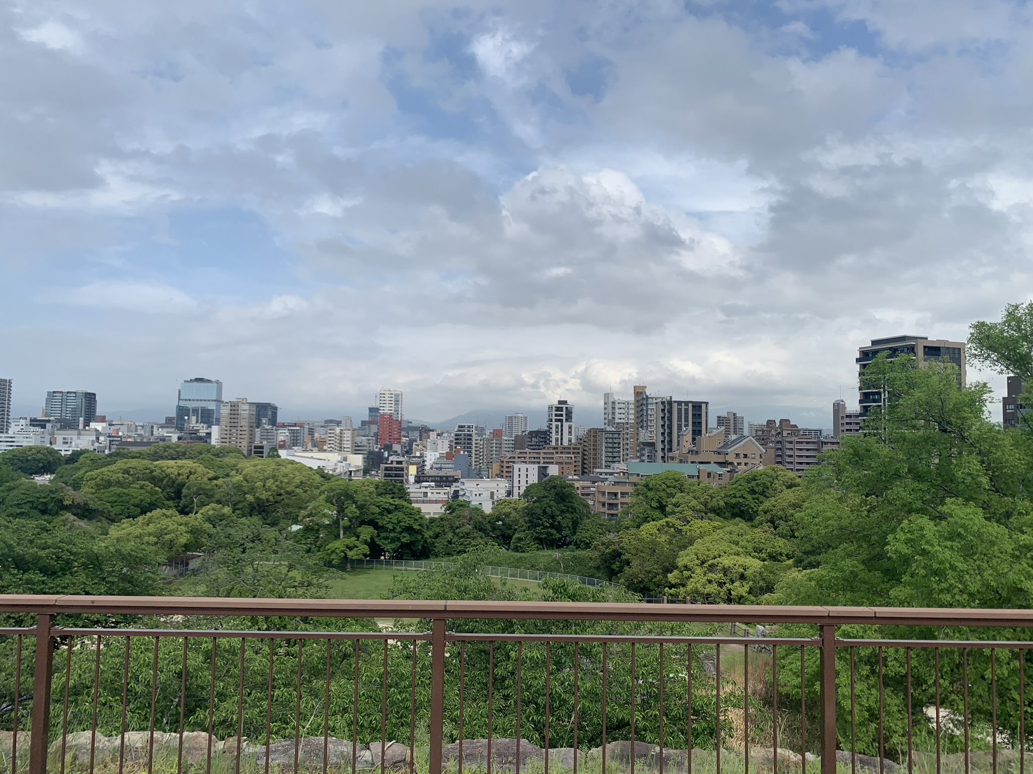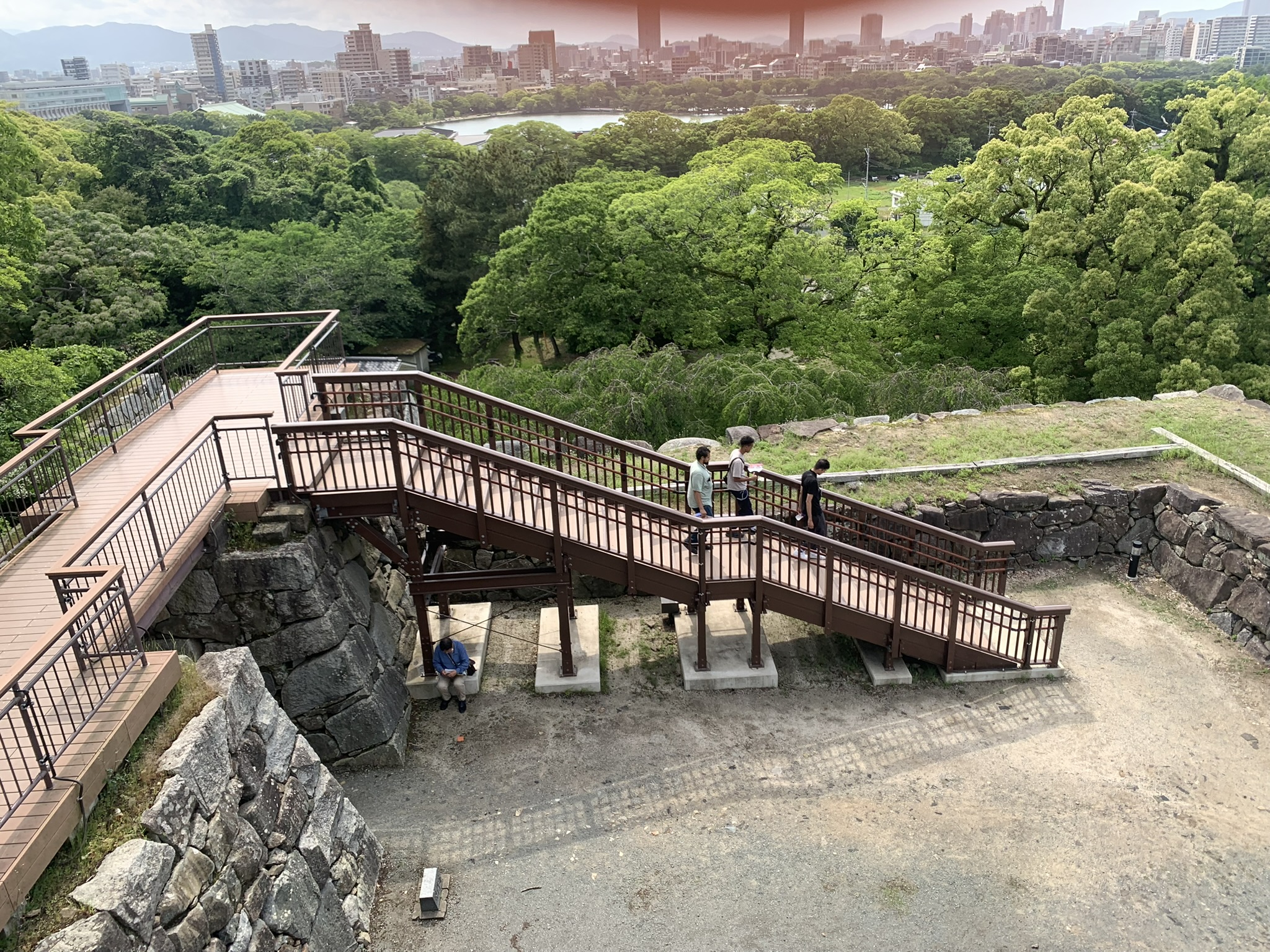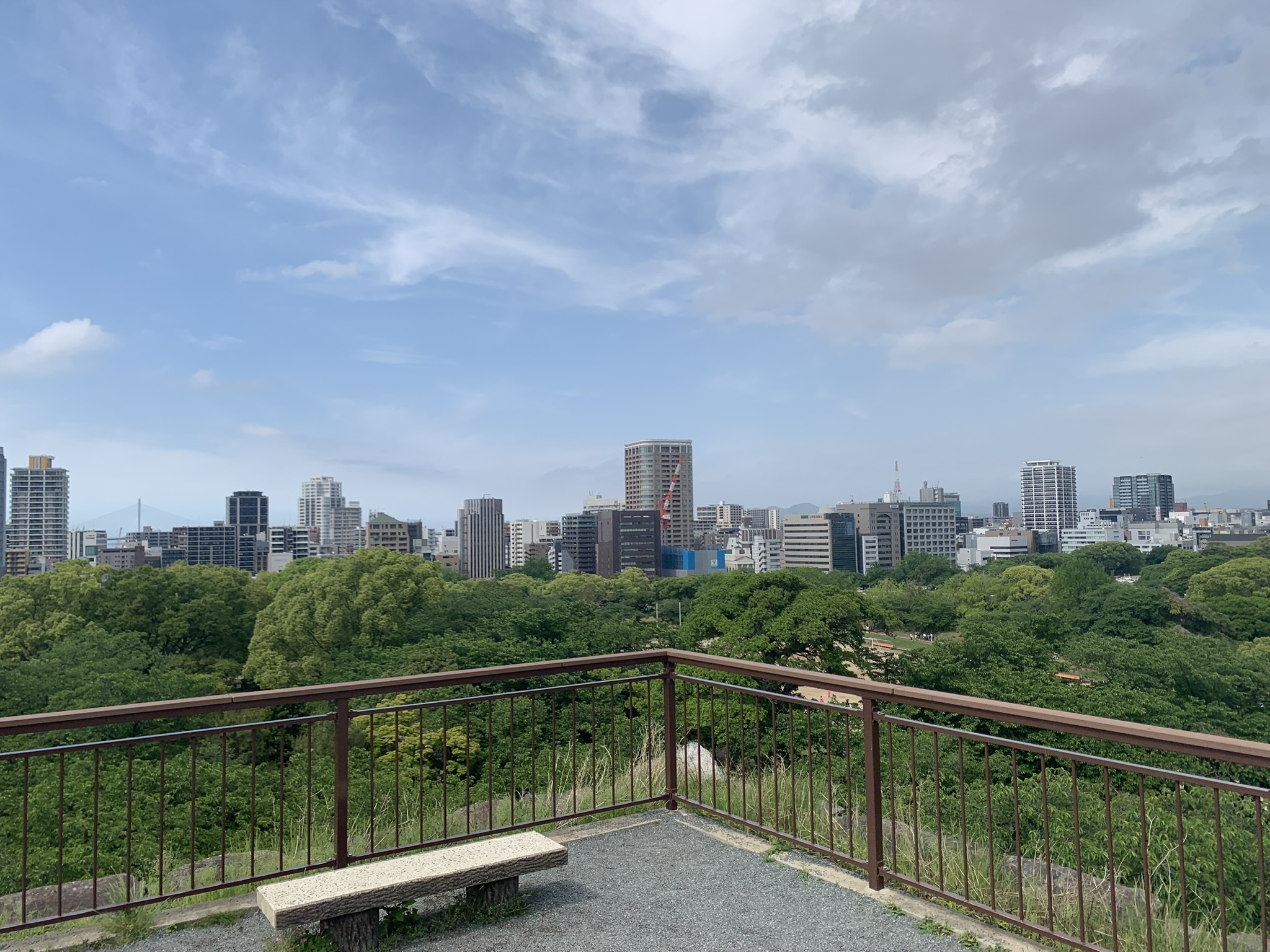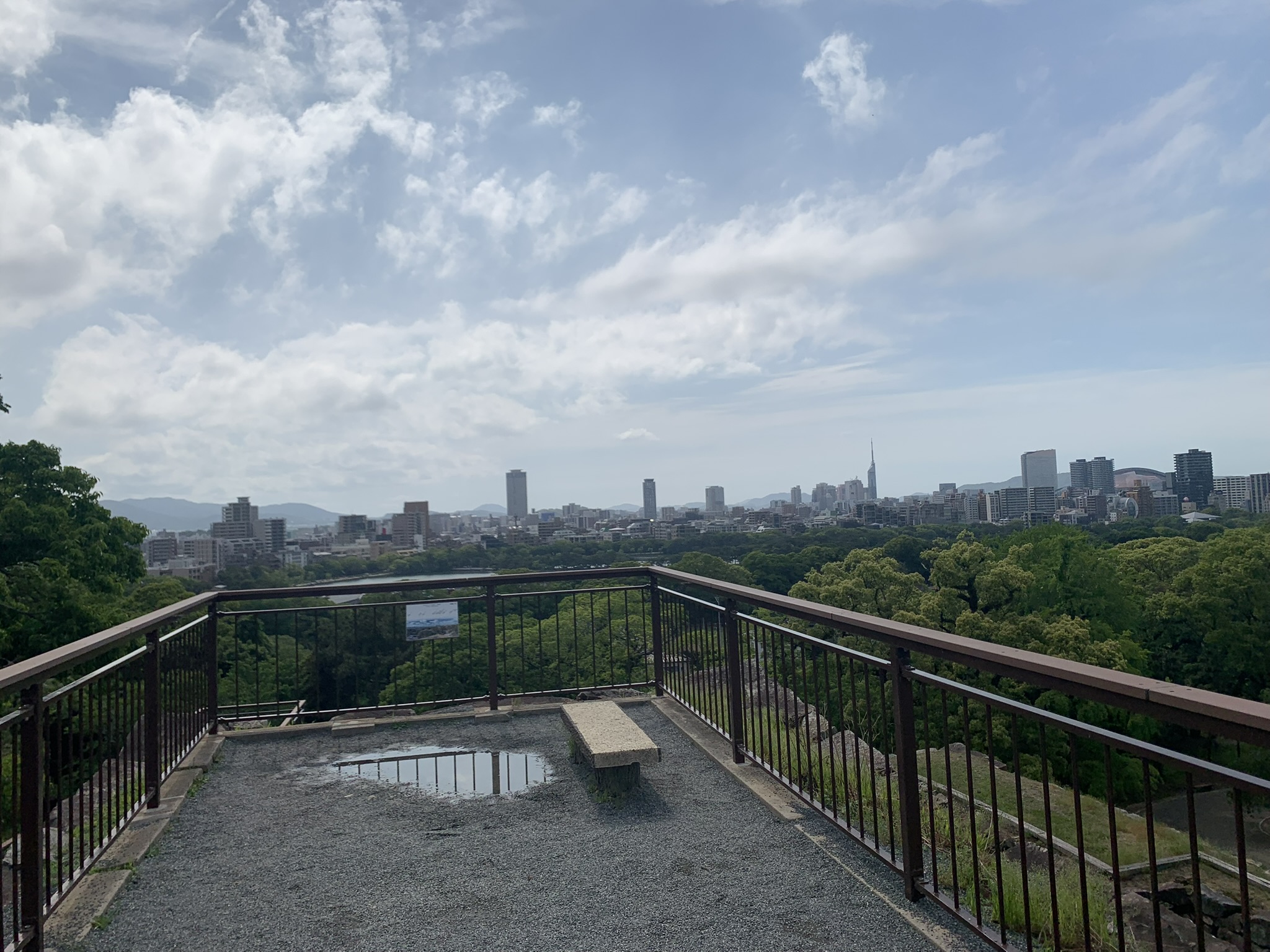 음.. 높지않은 곳에.. 딱 저기가 후쿠오카 성터의 최종 컨텐츠군.. 하는 곳이 보였다. 올라가니 도시가 내려다보았는데, 서울 노을공원에서 내려다보이는 상암..? 혹은 남산에서 내려다본 서울시내 느낌을 느낄 수 있었다.