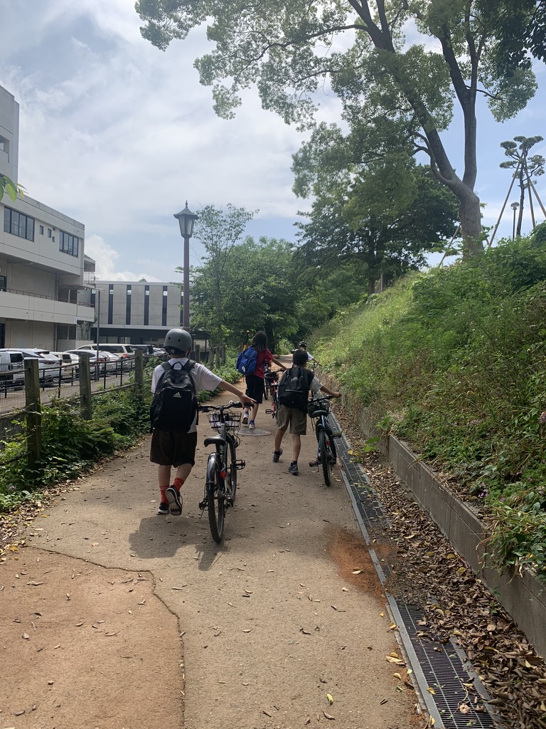 공원으로 올라가는 길인데, 누가 감시하는 사람도 없는데 학생들이나 성인들이나 모두 자전거를 끌고 가는 장면이 인상깊었다. + 헬멧을 쓰고다니는 모습들도! 우측을 보니 규모가 있는 콘크리트 구조물이 보였는데 대전차 방호벽인가 했다.