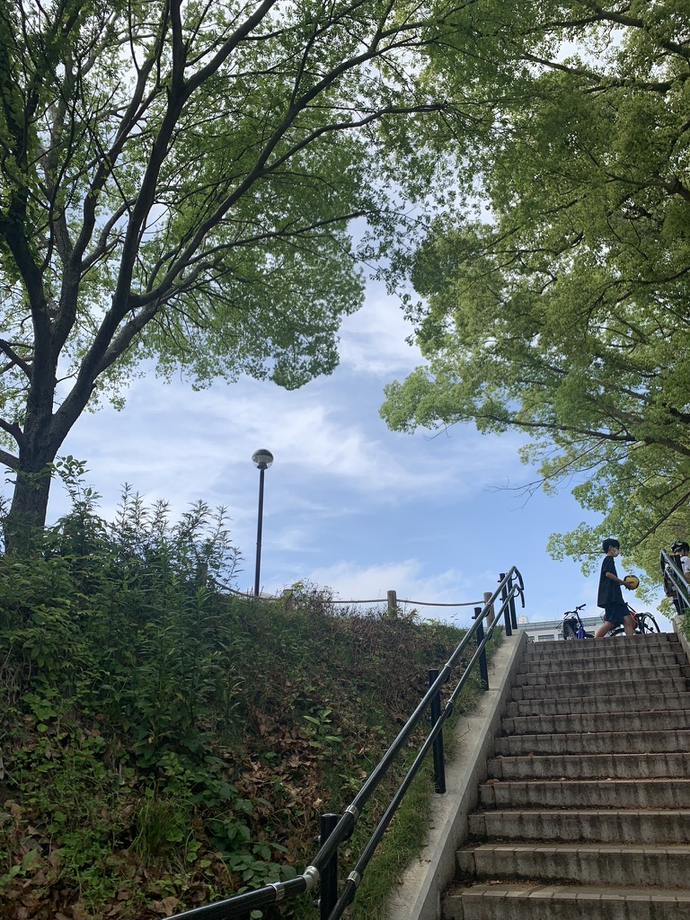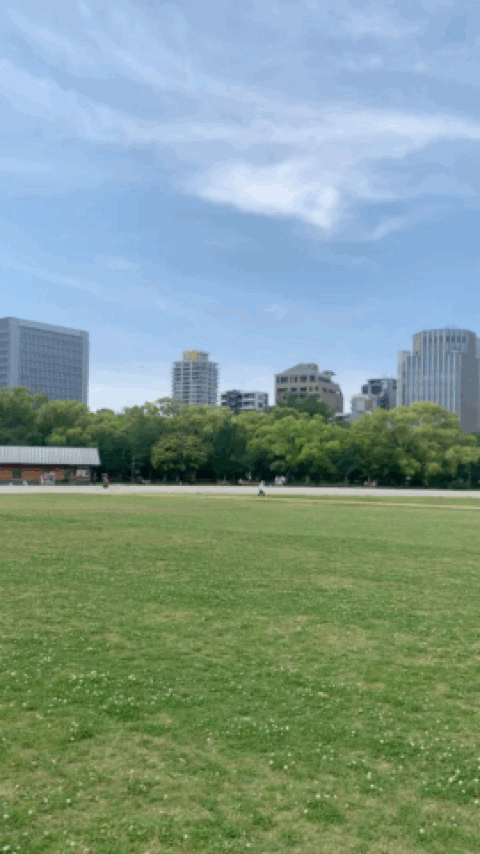 공원 정상? (한 3분 걸으면 정상임) 에 올라오니 거대한 녹지가 펼쳐졌고 후쿠오카 시민들이 공원에서 여유를 즐기고 있었다. 돗자리를 가져와서 피크닉을 하거나, 야구, 그리고 그.. 머라하지 사과로 저글링?... 각자의 취미를 자유롭게 즐기고 있었다.