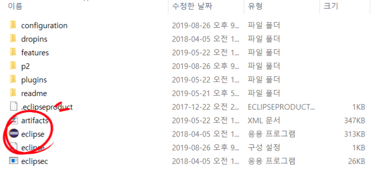 C:\eGovFrameDev-3.8.0-64bit\eclipse 경로로 들어와 이클립스를 실행해보자