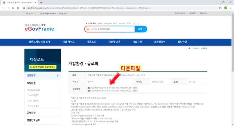 개발환경 글조회 - eGovFrame Portal 온라인 지원 포탈