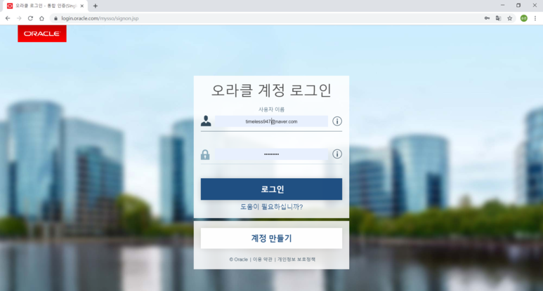 음.. 그럼 로그인 하라고 뜬다.. 계정 간단하게 만들어서 받으면 된다.