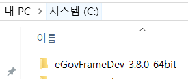 C드라이브로 이동했다. 전자정부프레임워크는 이게 설치가 끝이다. 패키지 설치없이 그냥 압축풀어서 아무데나 놓으면 설치가 된거다.