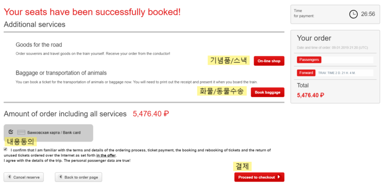 러시아어를 모르기때문에 횡단열차 예매가