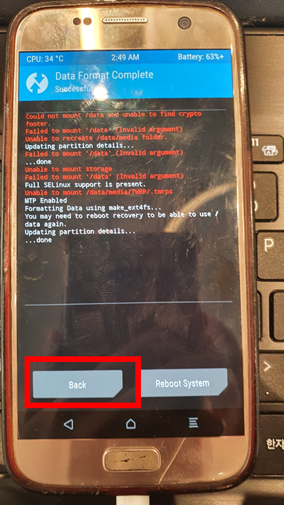 1. 포맷이 완료되면 메인화면(2번째 사진)에 도착 할 때까지 Back 버튼을 눌러준다.