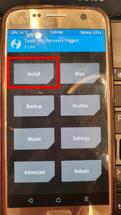 2. 정상적으로 리커버리 모드에 진입하면 TWRP 개발팀인 TEAMWIN의 로고가 나타난다.
