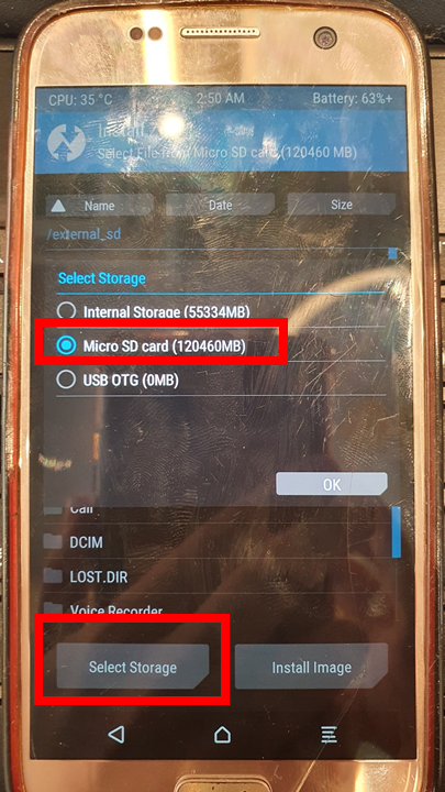 3. 하단에 Select Storage 버튼을 눌러주고 아까 파일을 옮겼던 외장 메모리를 선택해준다.