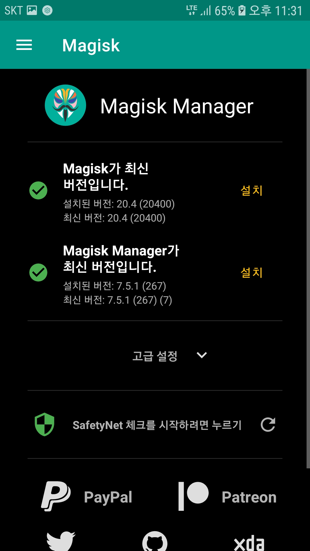 2. Magisk 앱을 실행시켜서 문제가 없으면 100% 완료